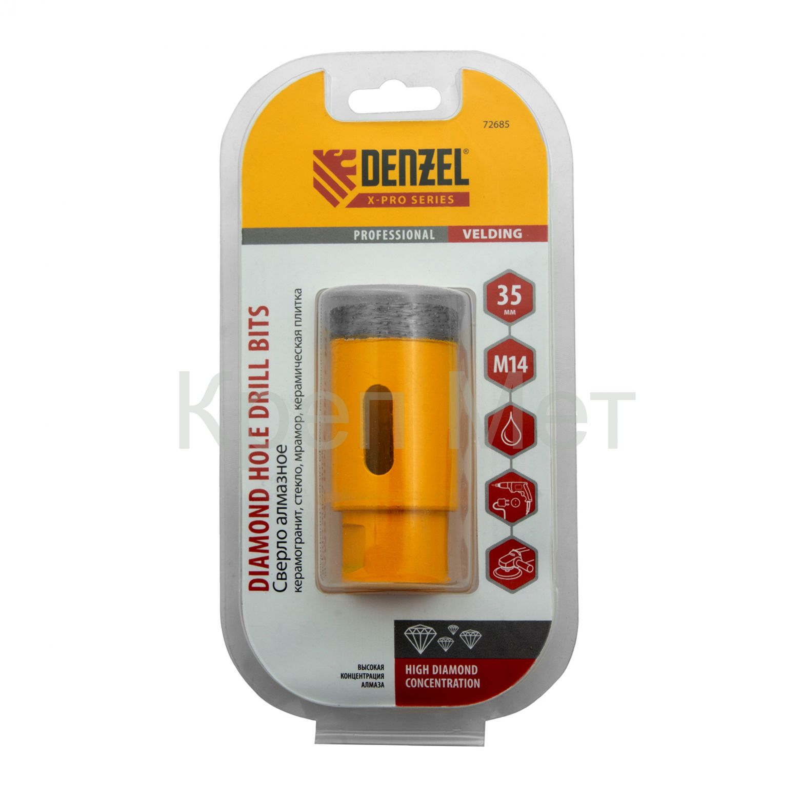 Сверло алмазное по керамограниту, 35 мм, мокрая резка, М14 Denzel