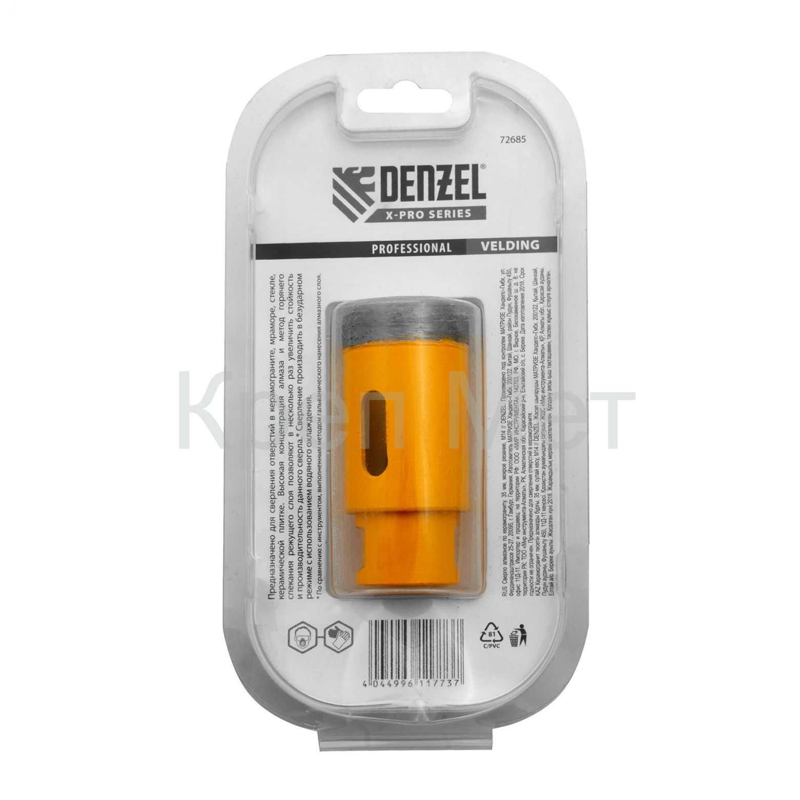 Алмазное сверло Denzel 72685 диаметром 35 мм, с резьбой М14, предназначено для «мокрого» сверления по керамограниту, мрамору, стеклу и керамической плитке. Позволяет получать ровные отверстия без сколов, используется для проведения ремонтных и отделочных работ. Сверло (коронку) устанавливают на вал углошлифовальной машины, благодаря чему скорость сверления увеличивается в несколько раз по сравнению с дрелью или шуруповертом. Применение водяного охлаждения повышает срок службы оснастки. Чтобы точно позиционировать сверло при сверлении дрелью, рекомендуется использовать кондуктор (арт. 72830).