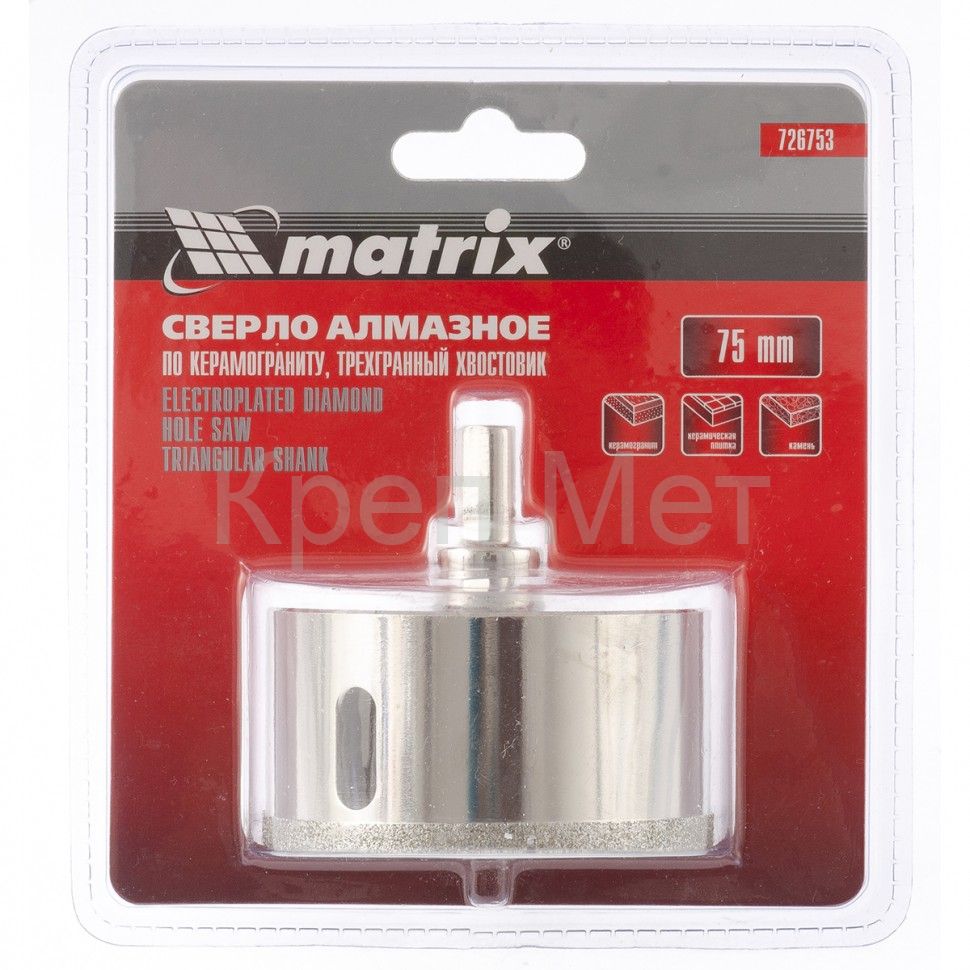 - Сверло алмазное по керамограниту, 75 х 67 мм, трехгранный хвостовик Matrix
