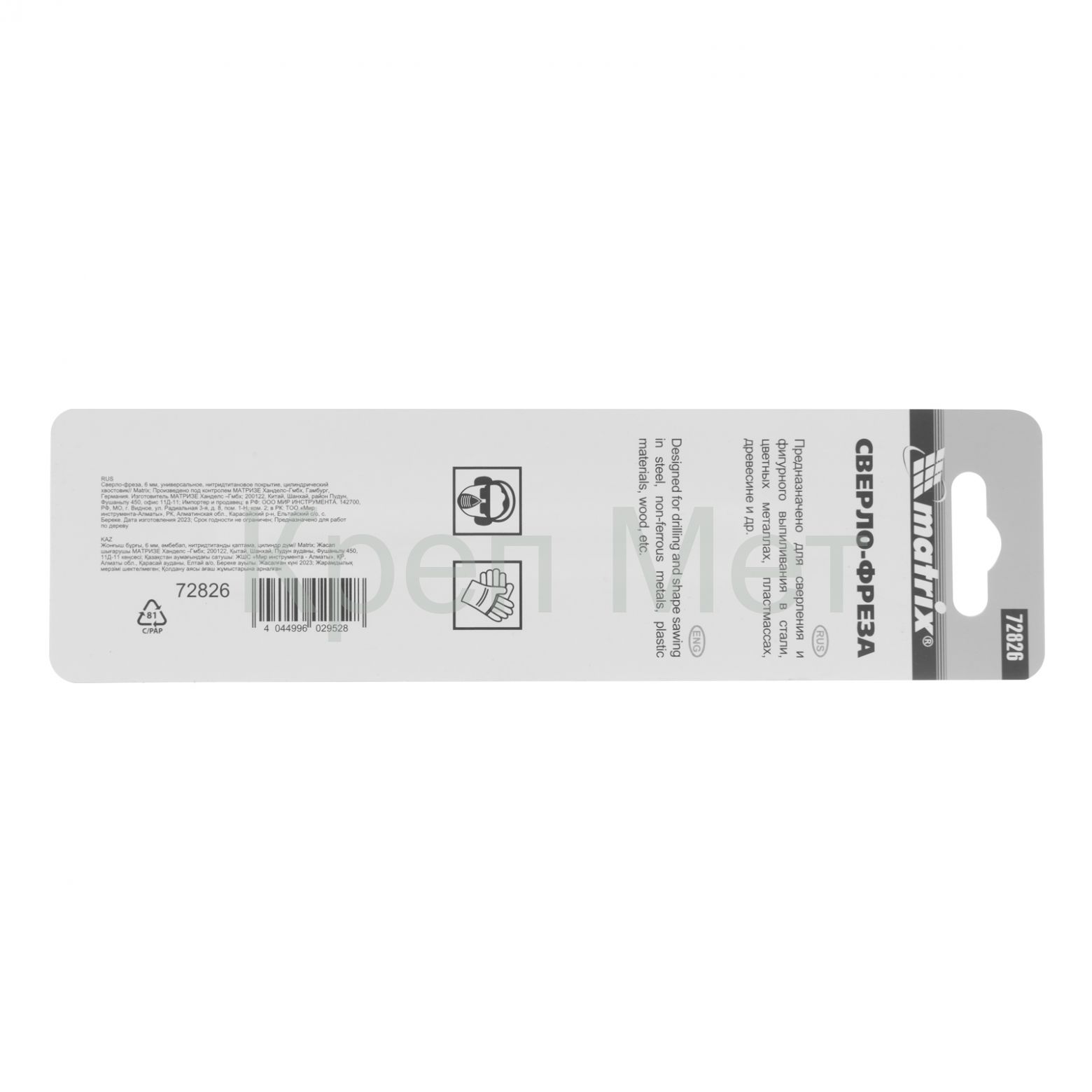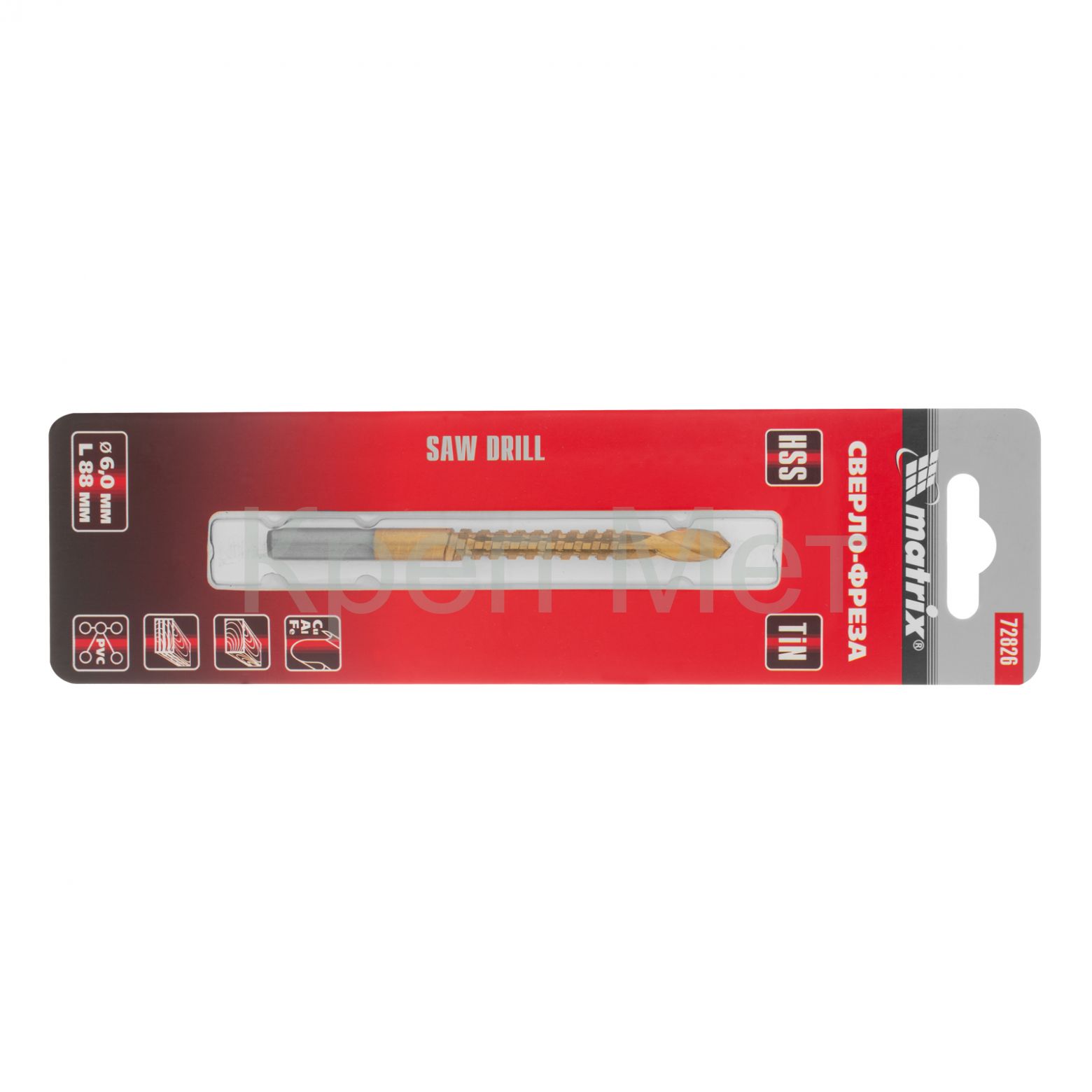 Сверло-фреза, 6 мм, универсальное, нитридтитановое покрытие, цилиндрический хвостовик Matrix