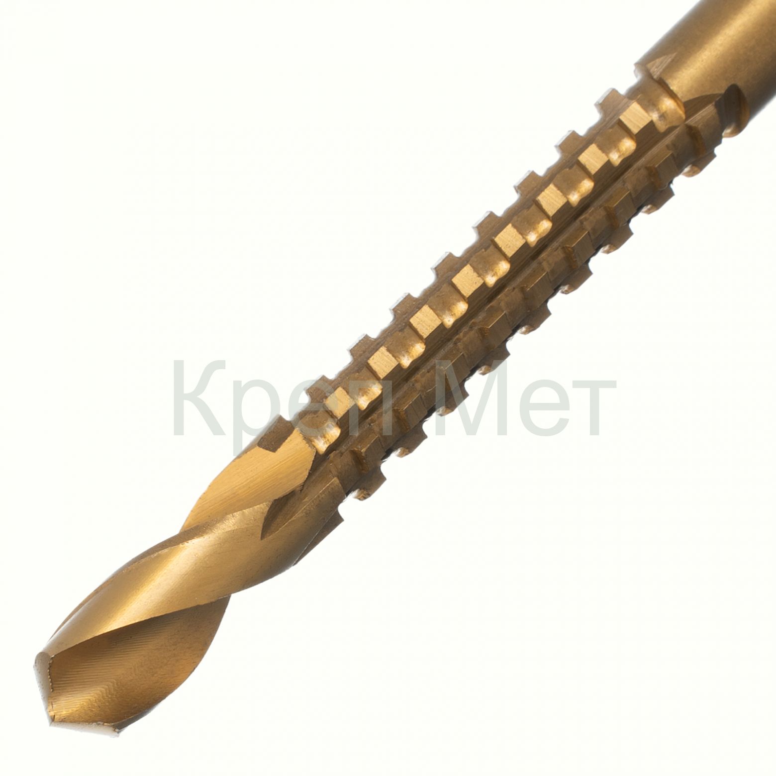 - Нитридтитановое покрытие защищает сверло-фрезу от коррозии и повышает его устойчивость к перегреву.
