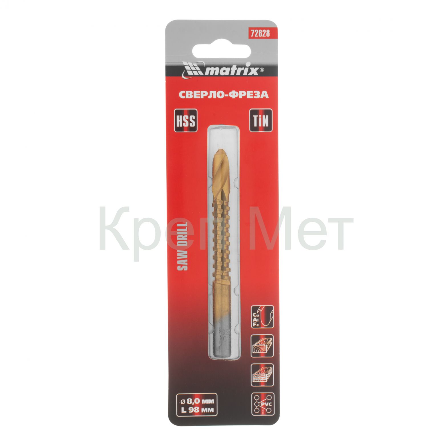 - Сверло-фреза, 8 мм, универсальное, нитридтитановое покрытие, цилиндрический хвостовик Matrix