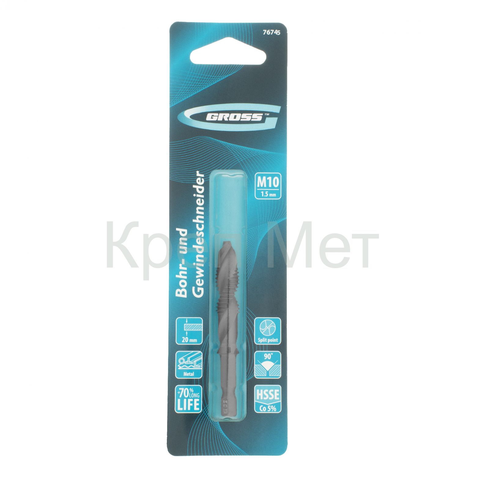 Сверло-метчик Gross 76745 из стали с 5%-м содержанием кобальта предназначено для получения глухих и сквозных отверстий в металлических заготовках с одновременным нарезанием правой резьбы M10 с шагом 1,5 мм. Позволяет существенно сэкономить время работы, объединив две операции в одну. Угол заточки 135° оптимален для работы с чугуном, сталью, алюминием, медью, бронзой.