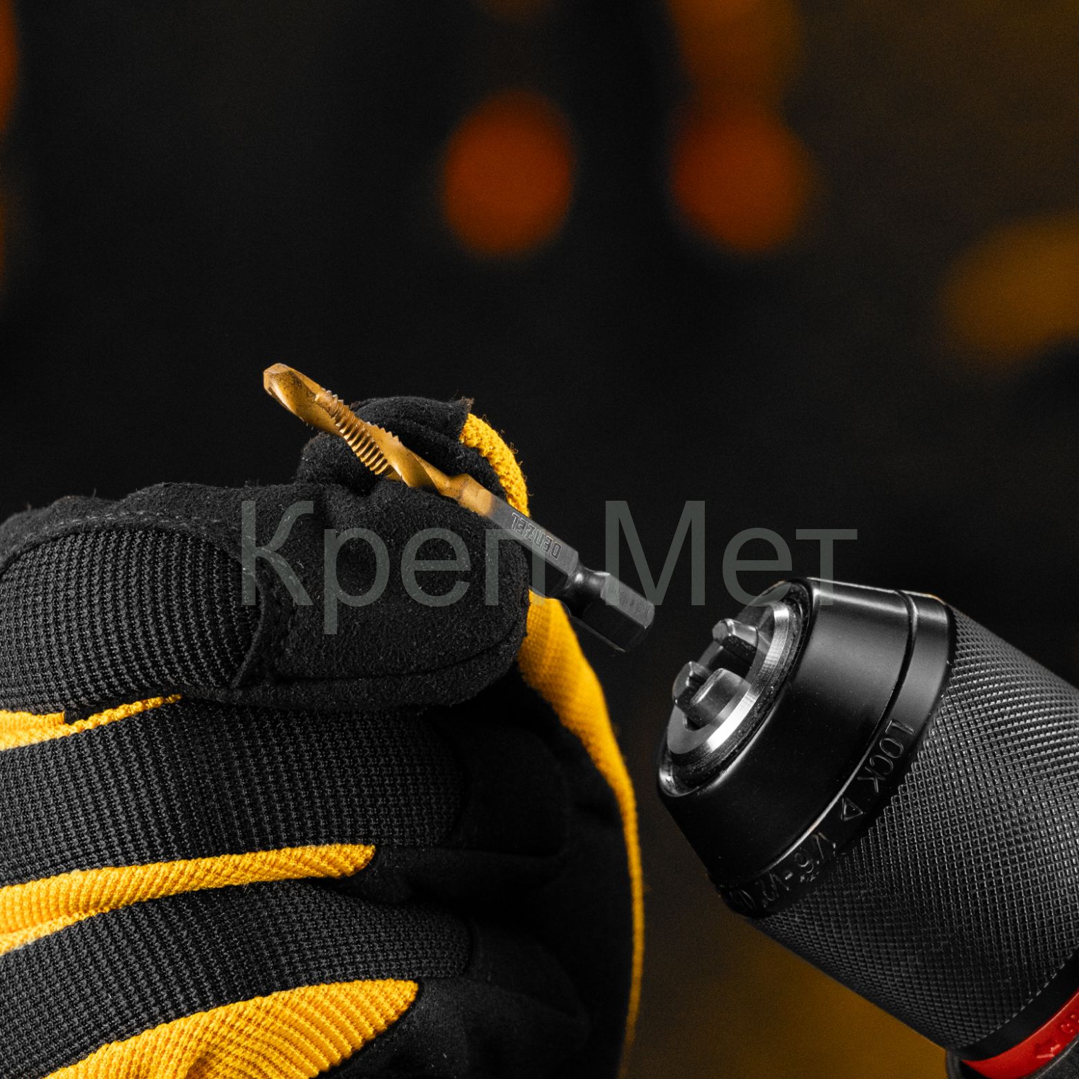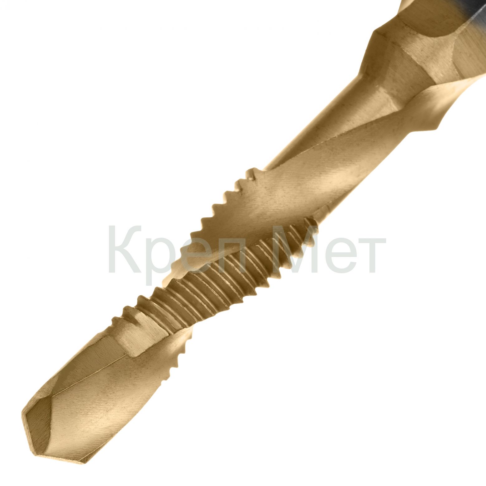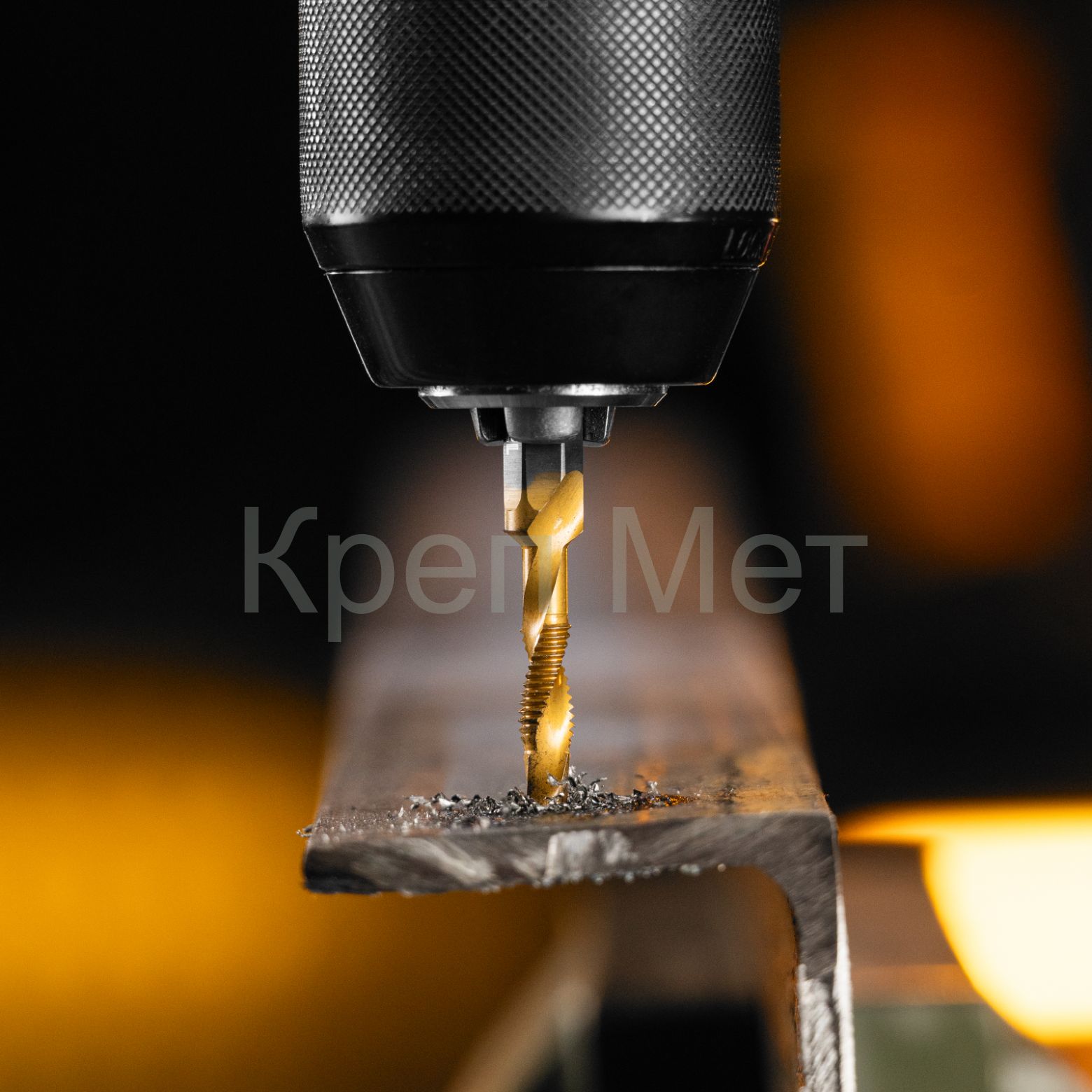 - Долговечность — нитридтитановое покрытие защищает от повреждений и уменьшает трение, что увеличивает устойчивость сверла-метчика к износу.