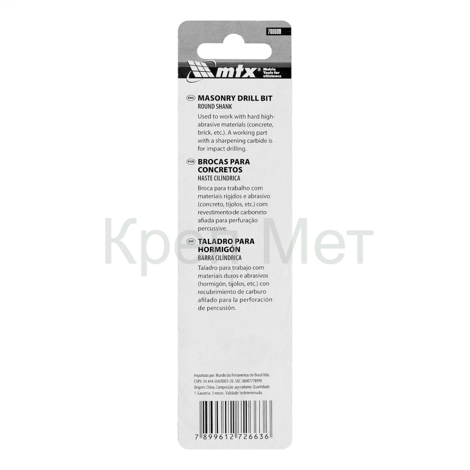 Сверло MTX 708609 размером 10 х 120 мм, с цилиндрическим хвостовиком, устанавливается на дрели для получения отверстий в бетоне, кирпиче, мраморе и других твердых материалах. Оно рассчитано на полупрофессиональное использование, подходит и для осуществление ремонтных/монтажных работ в быту.