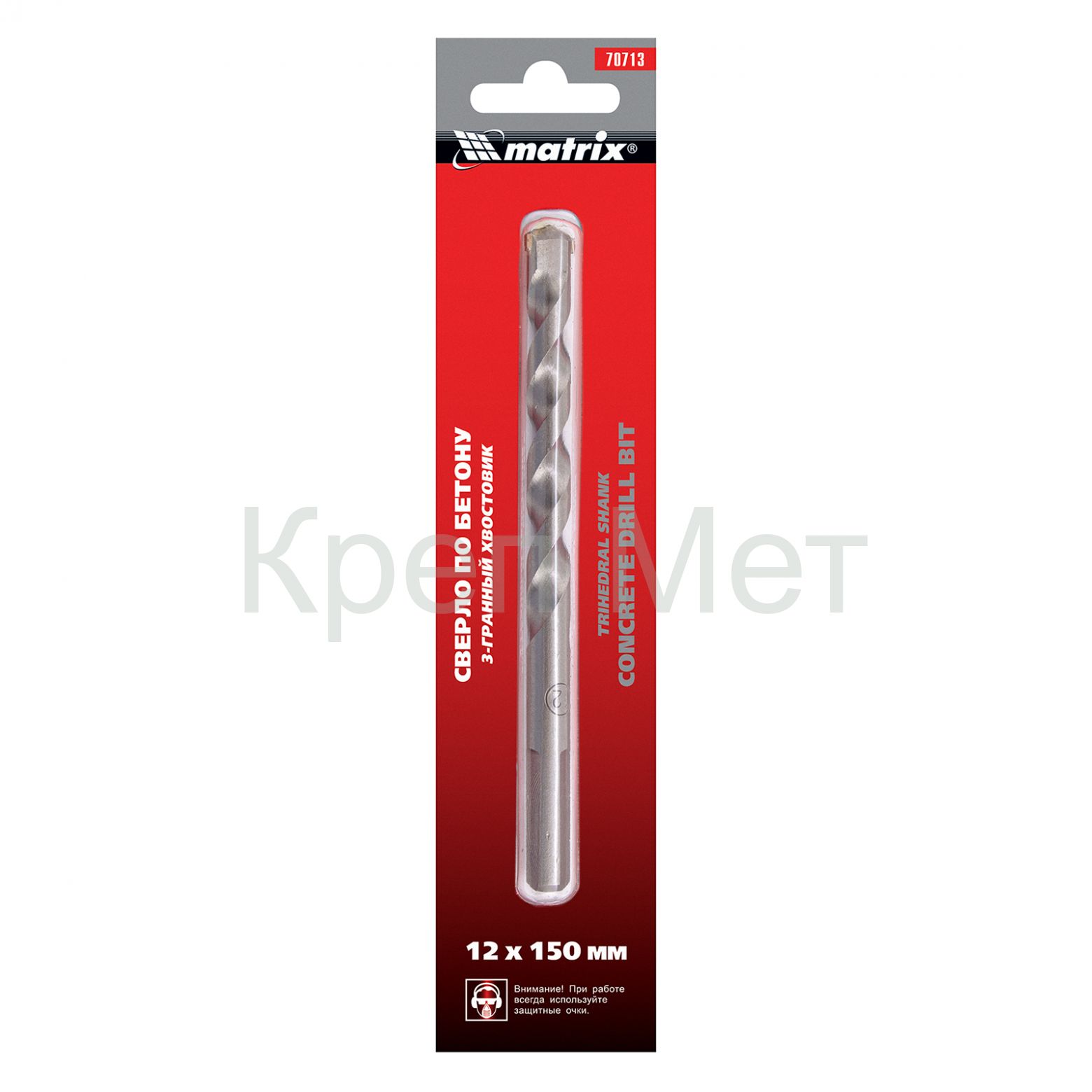 - Сверло по бетону, 12 х 150 мм, трехгранный хвостовик Matrix