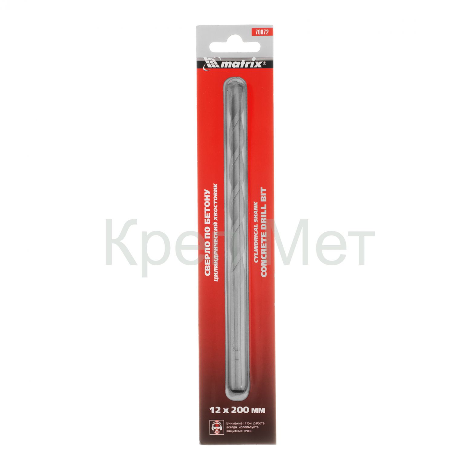 Сверло по бетону, 12 х 200 мм, цилиндрический хвостовик Matrix