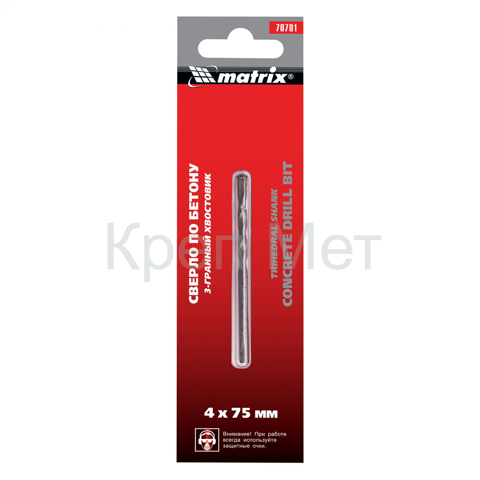 Сверло по бетону, 4 х 75 мм, трехгранный хвостовик Matrix