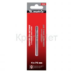 - Сверло по бетону, 4 х 75 мм, трехгранный хвостовик Matrix