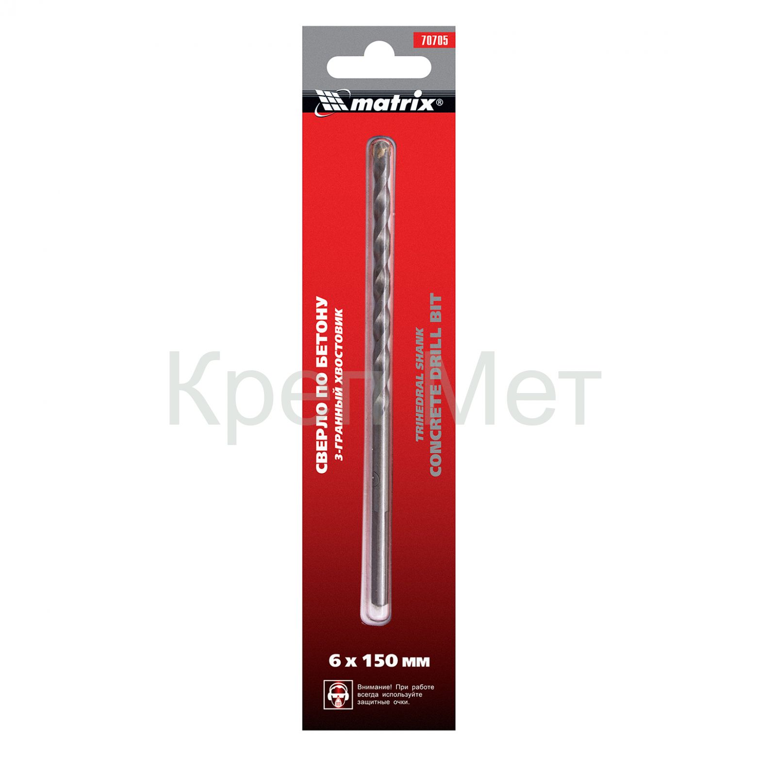 - Сверло по бетону, 6 х 150 мм, трехгранный хвостовик Matrix
