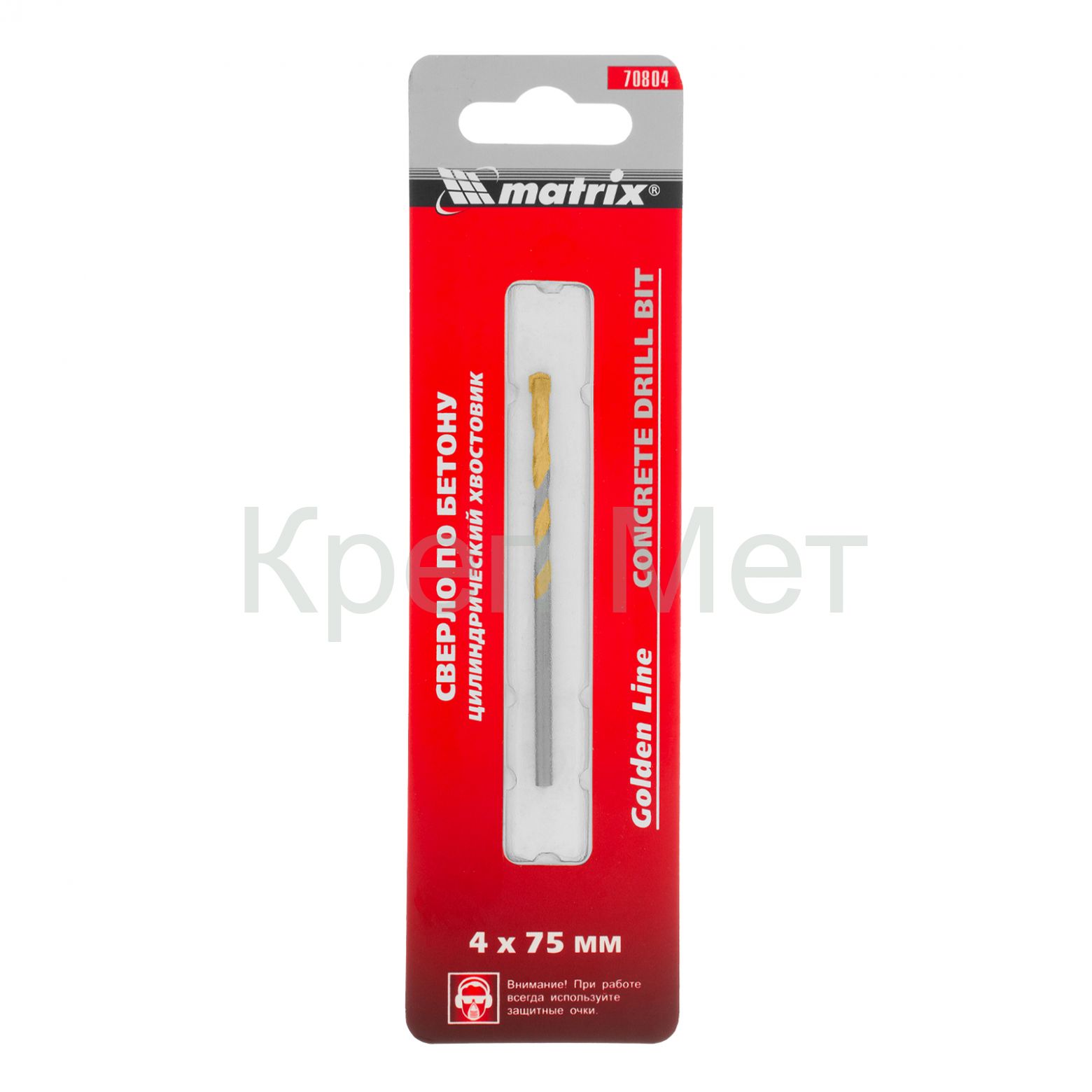 - Сверло по бетону Golden Line, 4 х 75 мм цилиндрический хвостовик Matrix