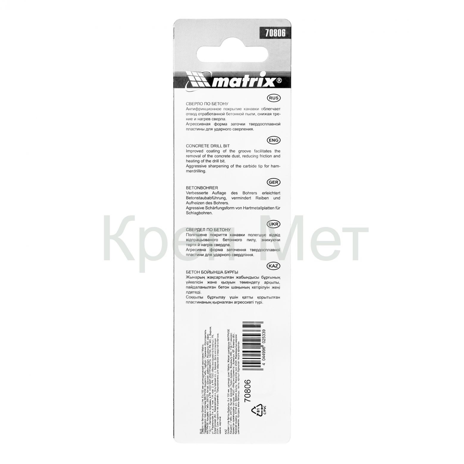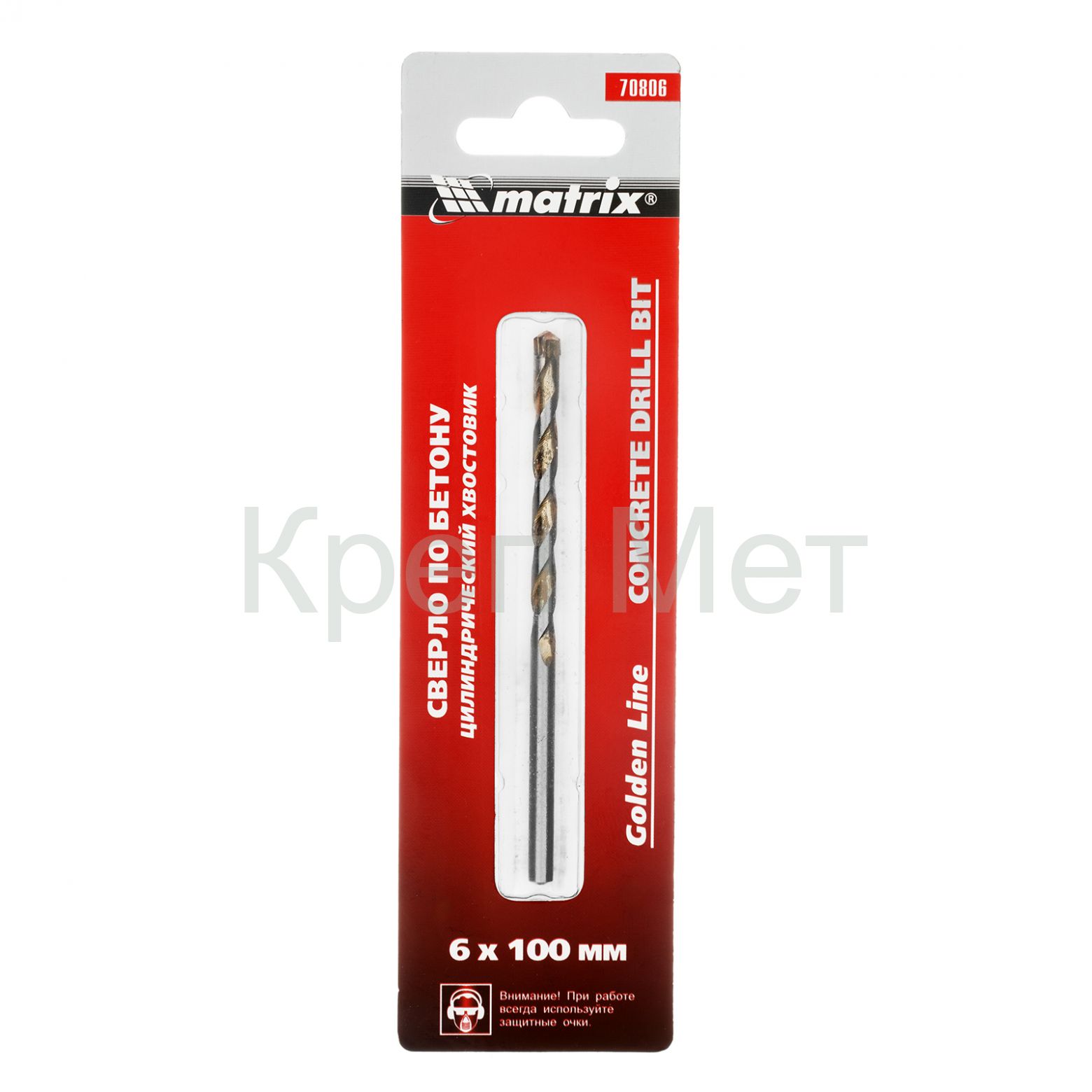- Сверло по бетону Golden Line, 6 х 100 мм цилиндрический хвостовик Matrix