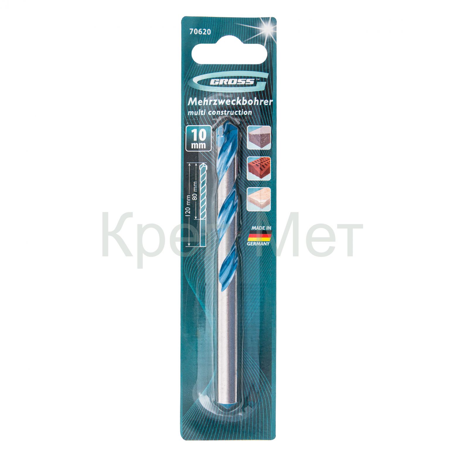 Сверло по бетону Gross Multipurpose Pro 70620 позволяет получать отверстия диаметром 10 мм в камне, бетоне и кирпиче. Подходит для работ по металлу и дереву, что позволяет сверлить разные материалы без замены оснастки. Сверло будет полезно во время строительства и ремонта, а также пригодится в быту.