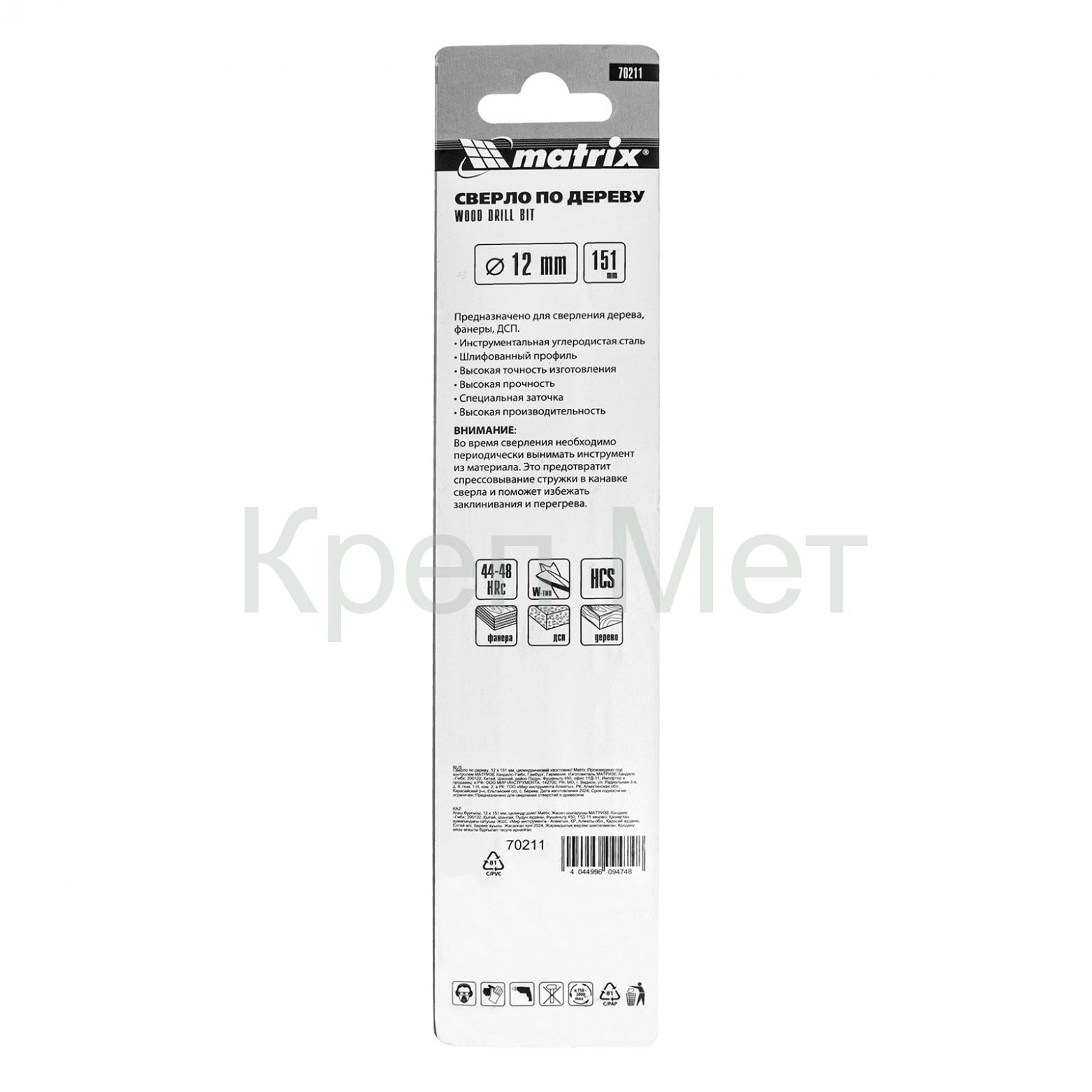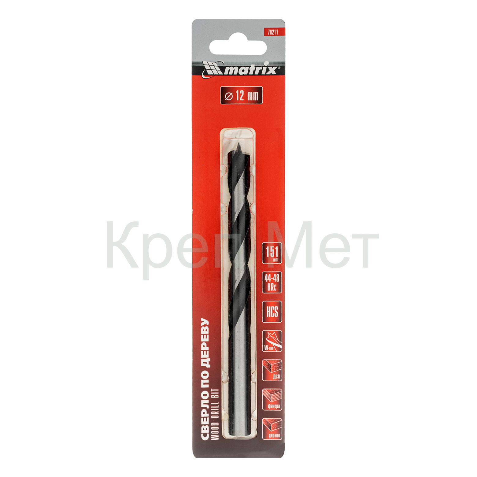 Сверло по дереву, 12 х 150 мм, цилиндрический хвостовик Matrix