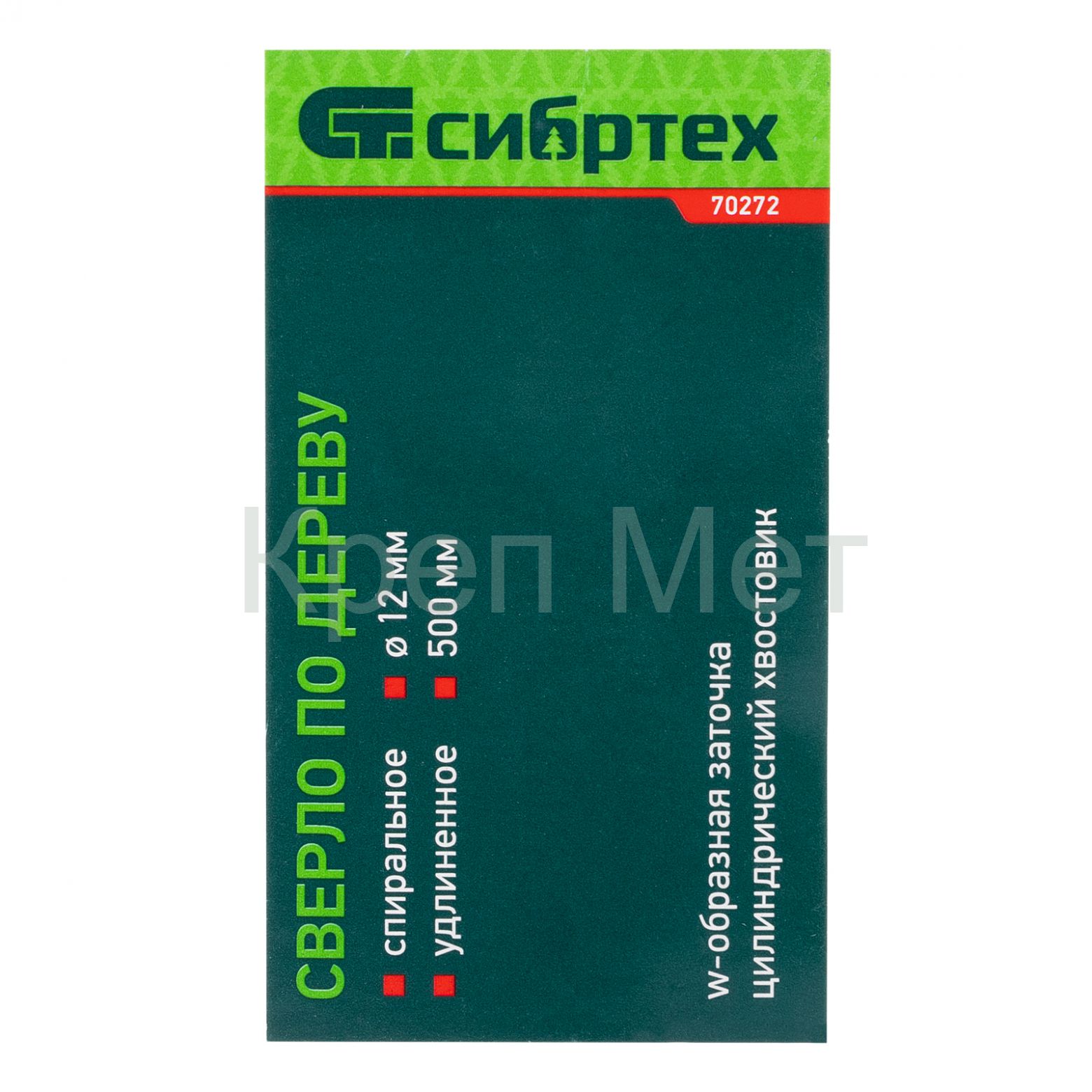 Сверло по дереву, 12 х 500 мм, цилиндрический хвостовик Сибртех