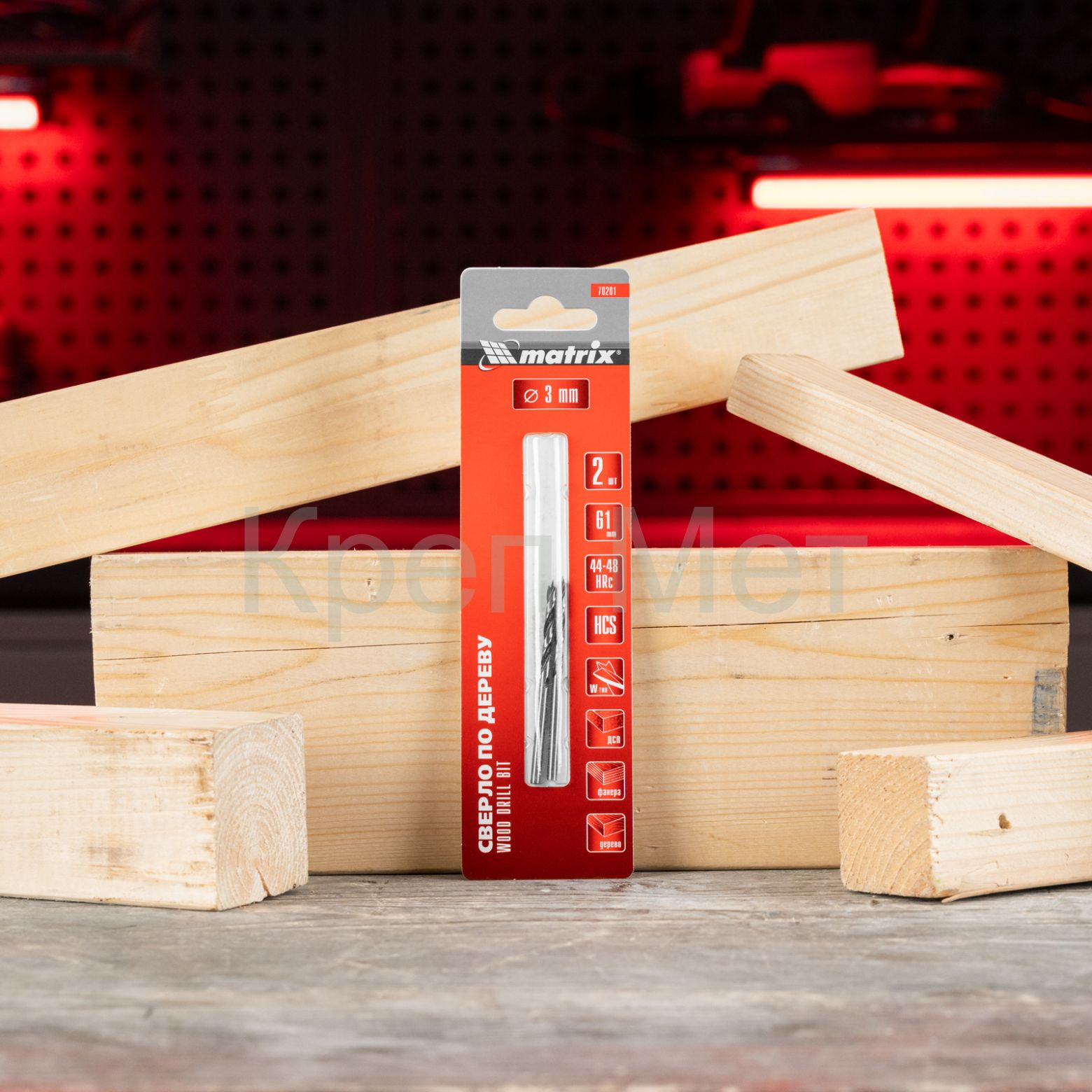 - Сверло по дереву, 3 x 61 мм, 2 шт, цилиндрический хвостовик Matrix
