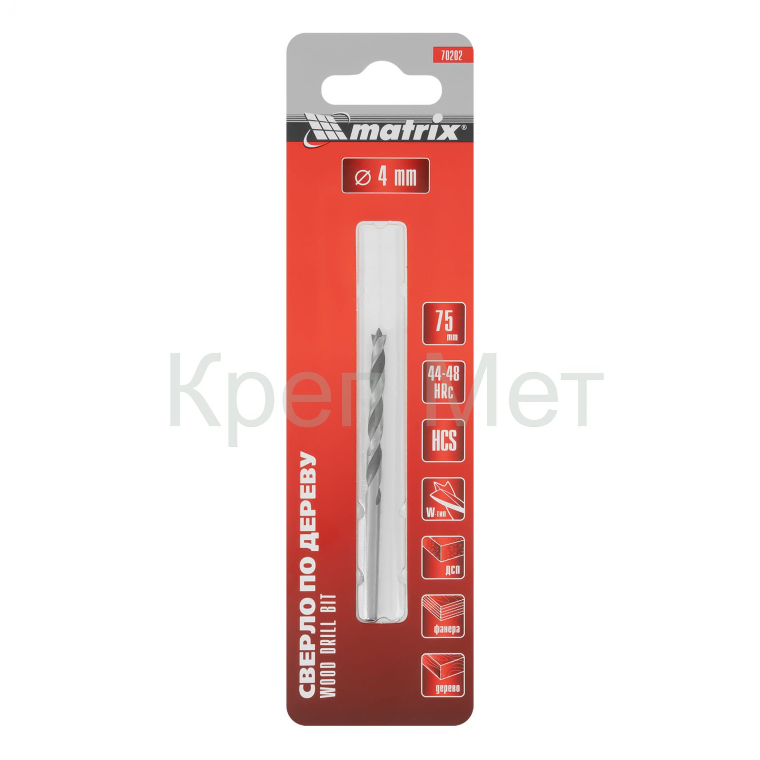 Сверло по дереву, 4 x 75 мм, цилиндрический хвостовик Matrix