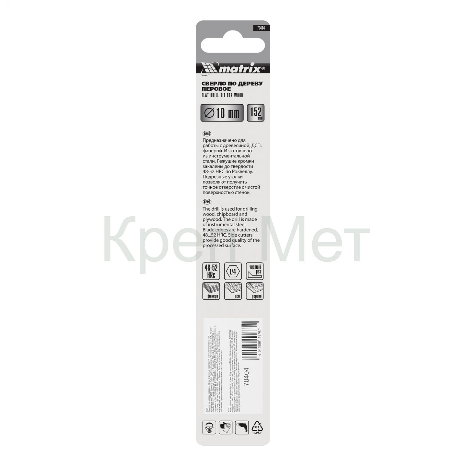Перовое сверло по дереву Matrix 70404 диаметром 10 мм, с 6-гранным хвостовиком, имеет рабочую часть в виде «лопатки» с режущими кромками по бокам, поэтому эффективно для сверления глубоких сквозных и глухих отверстий. Устанавливается на ручную механическую, электрическую дрель или шуруповерт, эффективно для сверления древесины любых пород.
