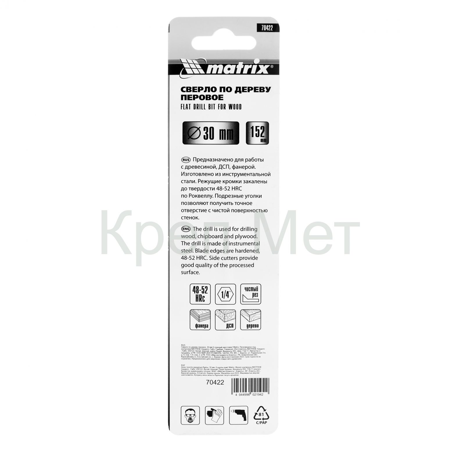 Сверло по дереву перовое, 30 мм, шестигранный хвостовик Matrix