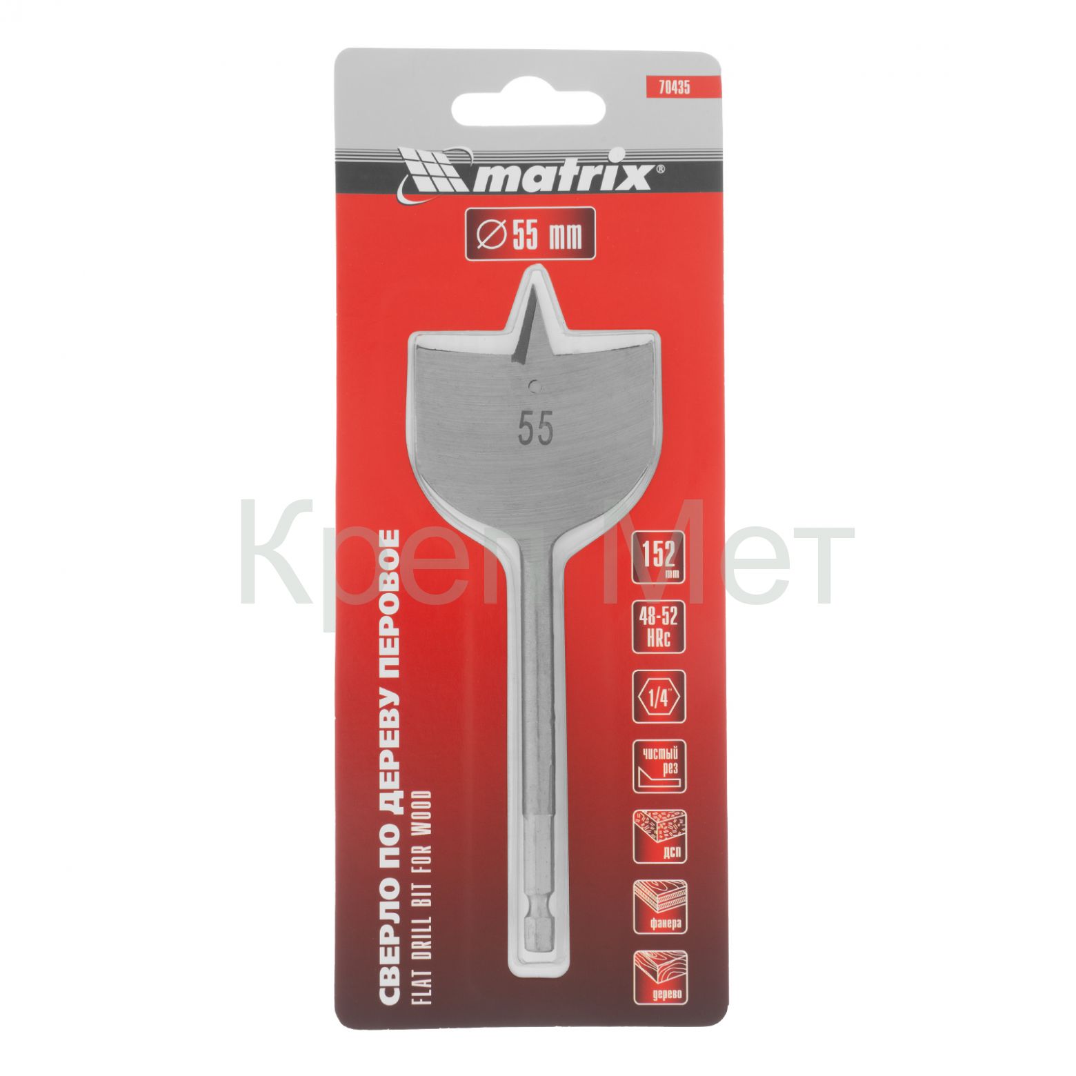 Сверло по дереву перовое, 55 мм, шестигранный хвостовик Matrix