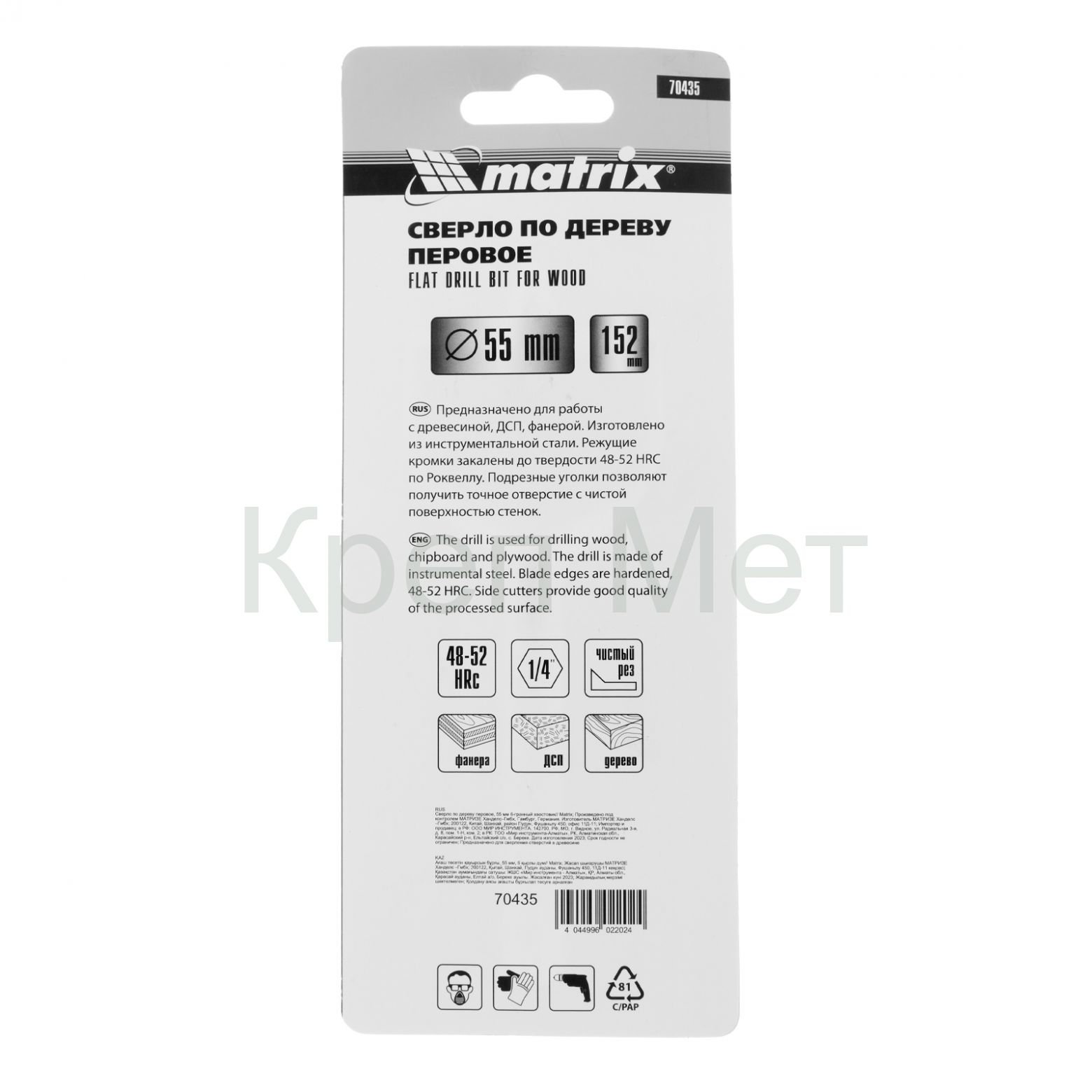 - Сверло по дереву перовое, 55 мм, шестигранный хвостовик Matrix