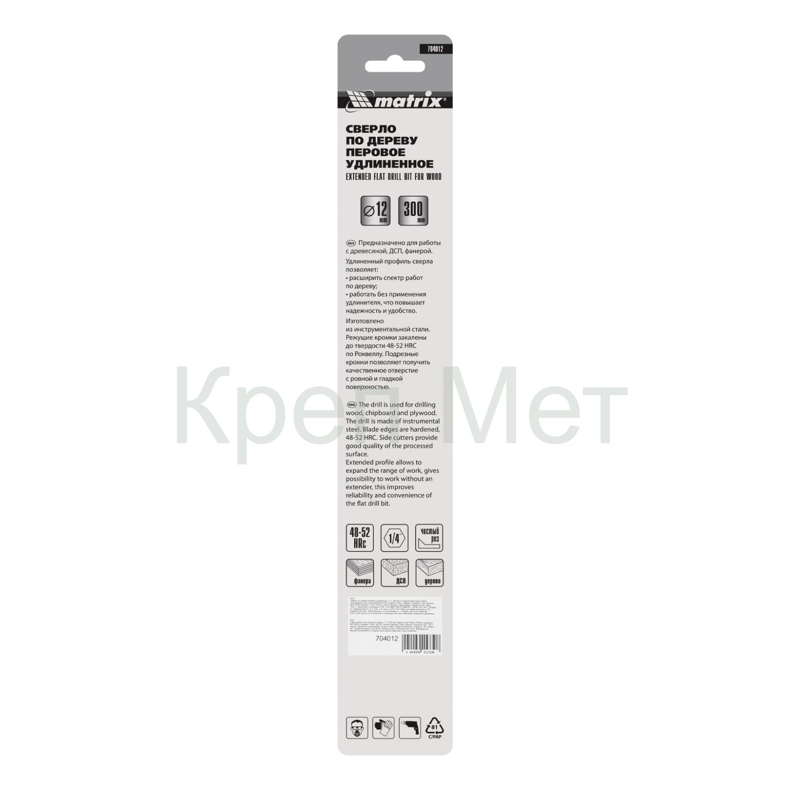 - Сверло по дереву перовое удлиненное, 12 х 300 мм, шестигранный хвостовик Matrix