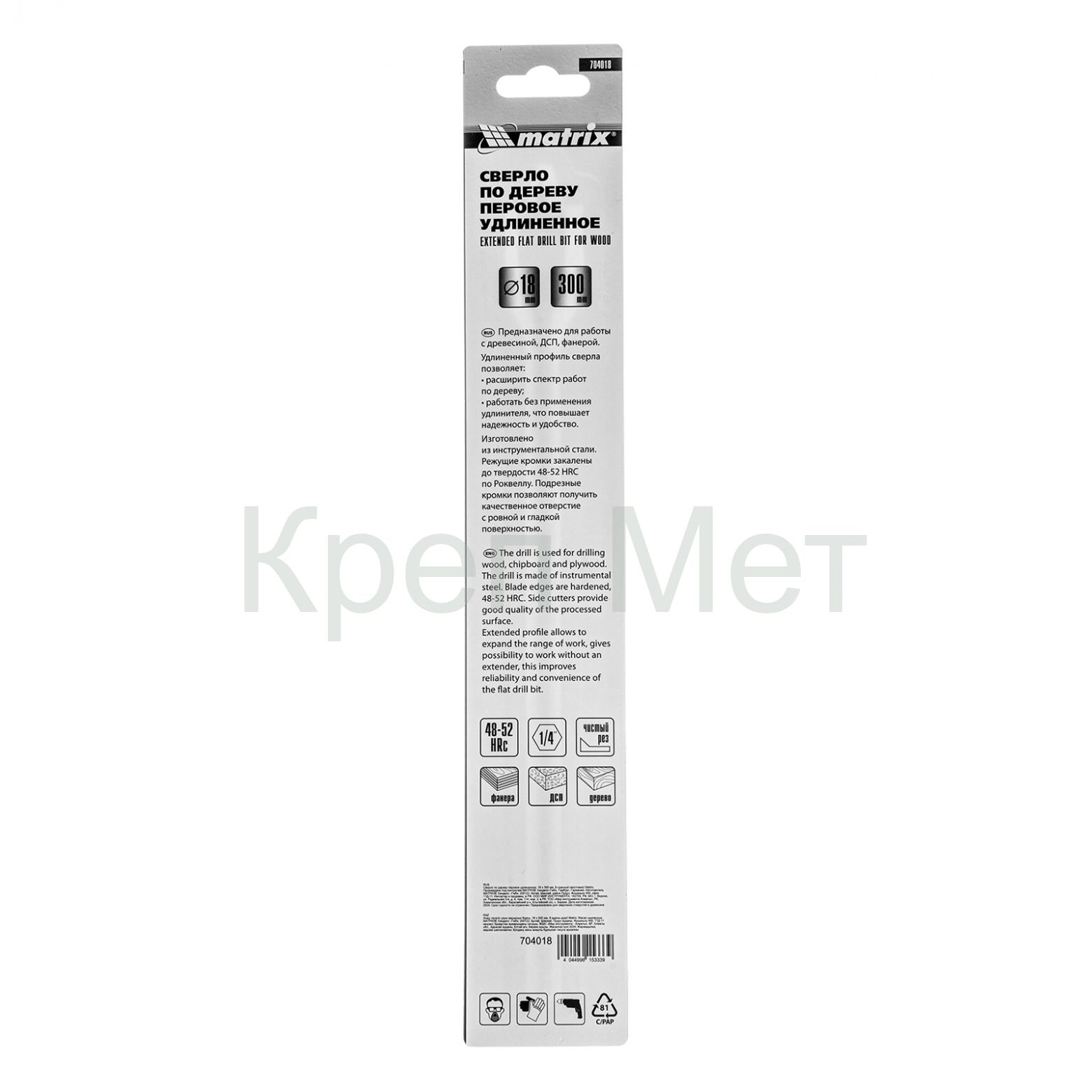 - Сверло по дереву перовое удлиненное, 18 х 300 мм, шестигранный хвостовик Matrix