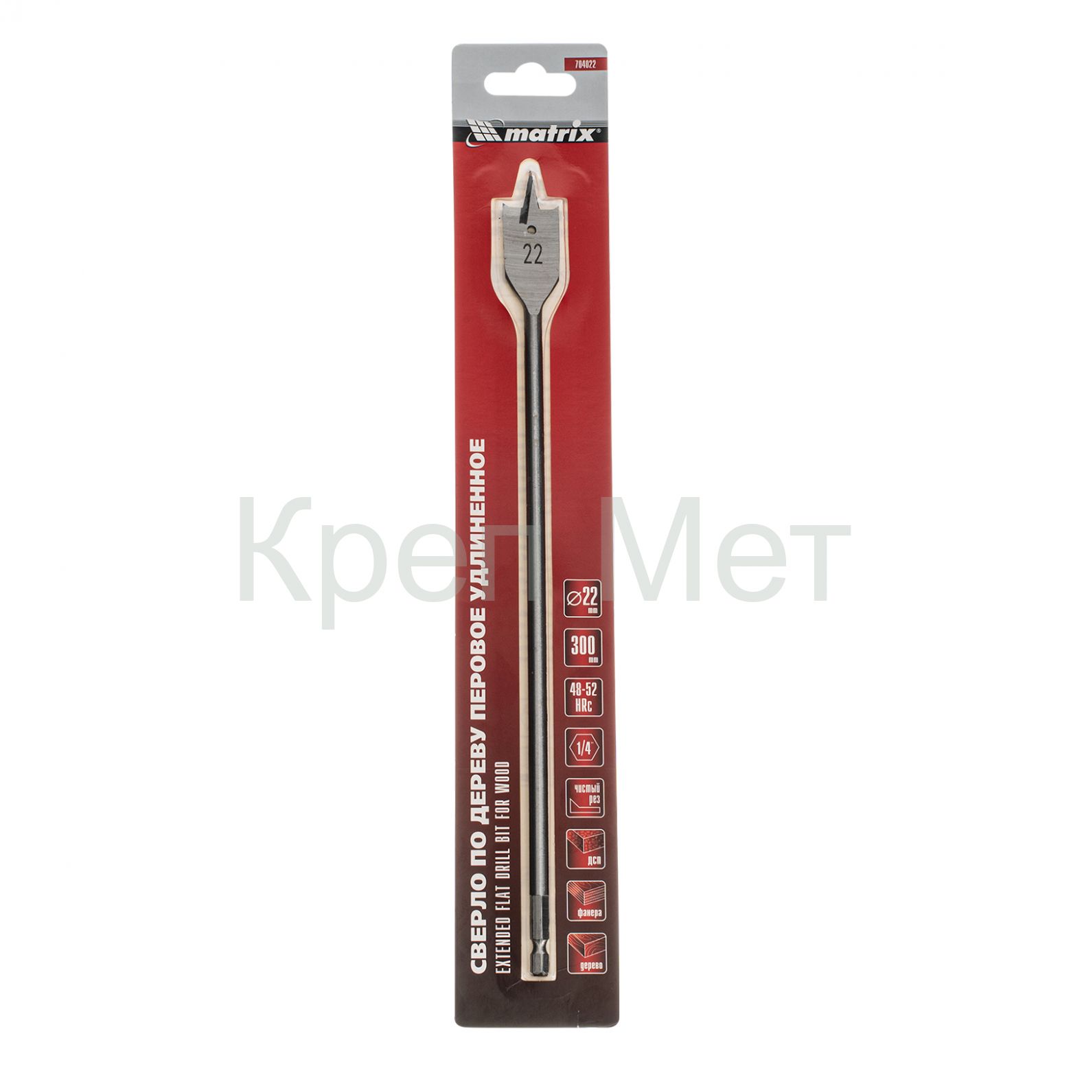 Сверло по дереву перовое удлиненное, 22 х 300 мм, шестигранный хвостовик Matrix