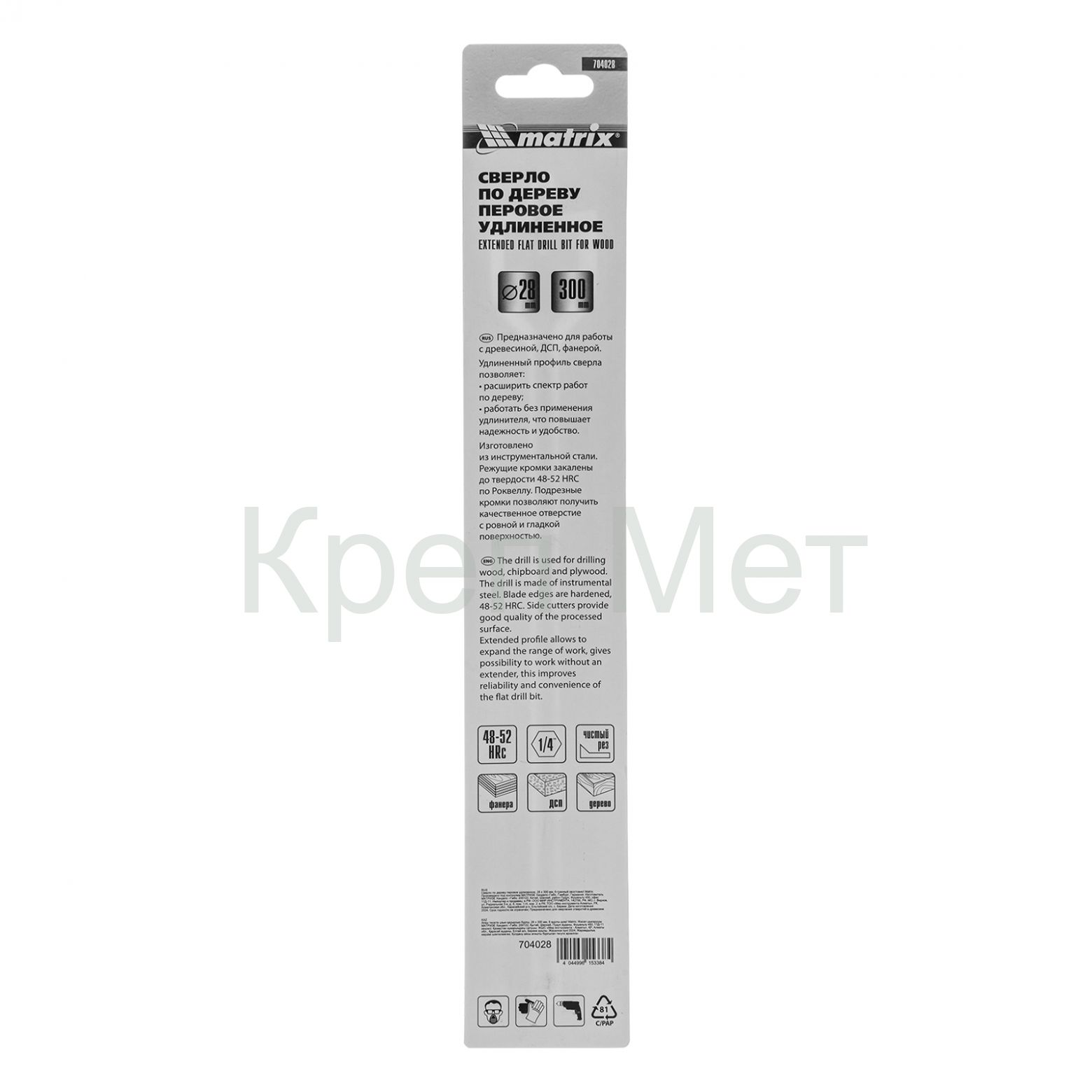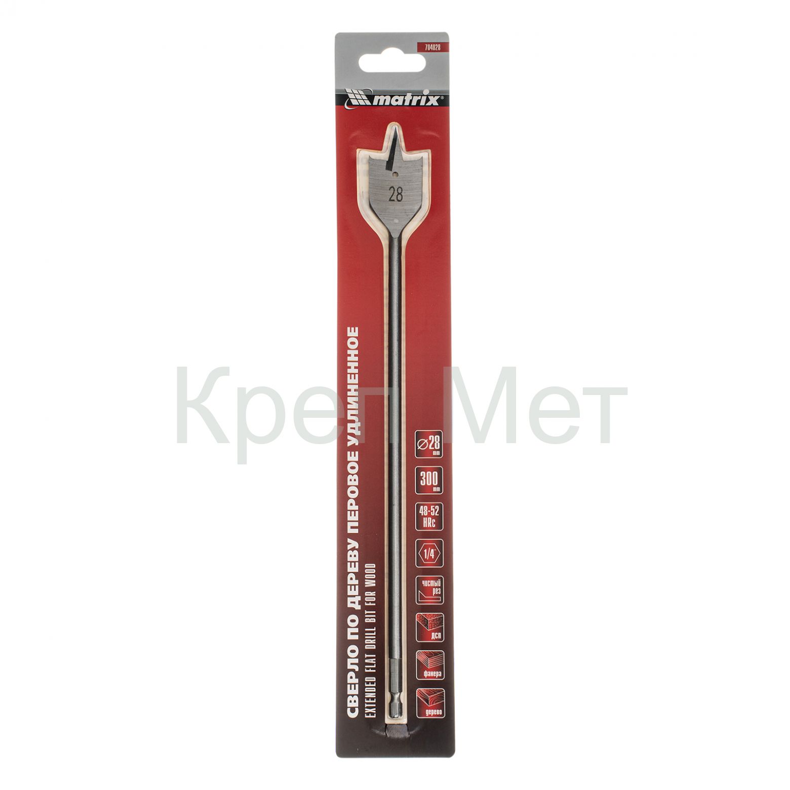- Сверло по дереву перовое удлиненное, 28 х 300 мм, шестигранный хвостовик Matrix