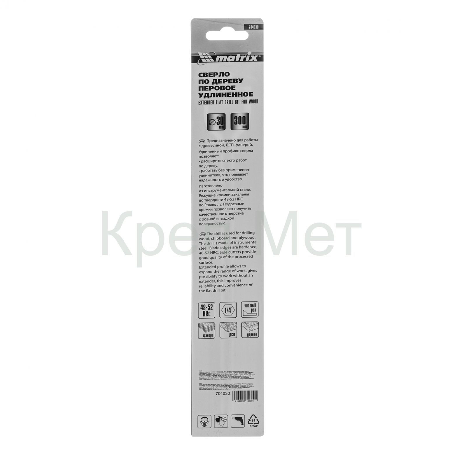 - Сверло по дереву перовое удлиненное, 30 х 300 мм, шестигранный хвостовик Matrix