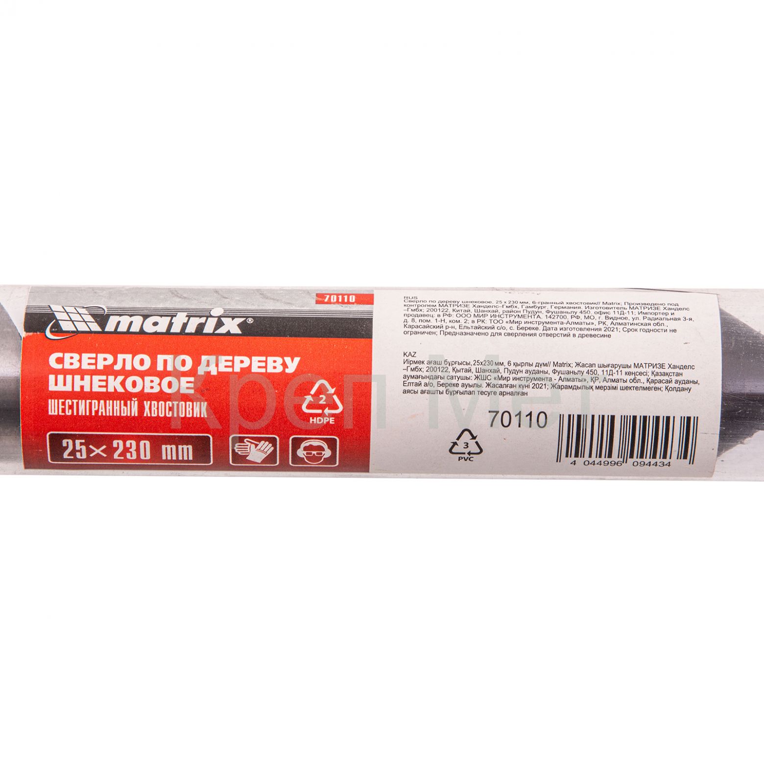 Сверло по дереву шнековое, 25 х 230 мм, шестигранный хвостовик Matrix