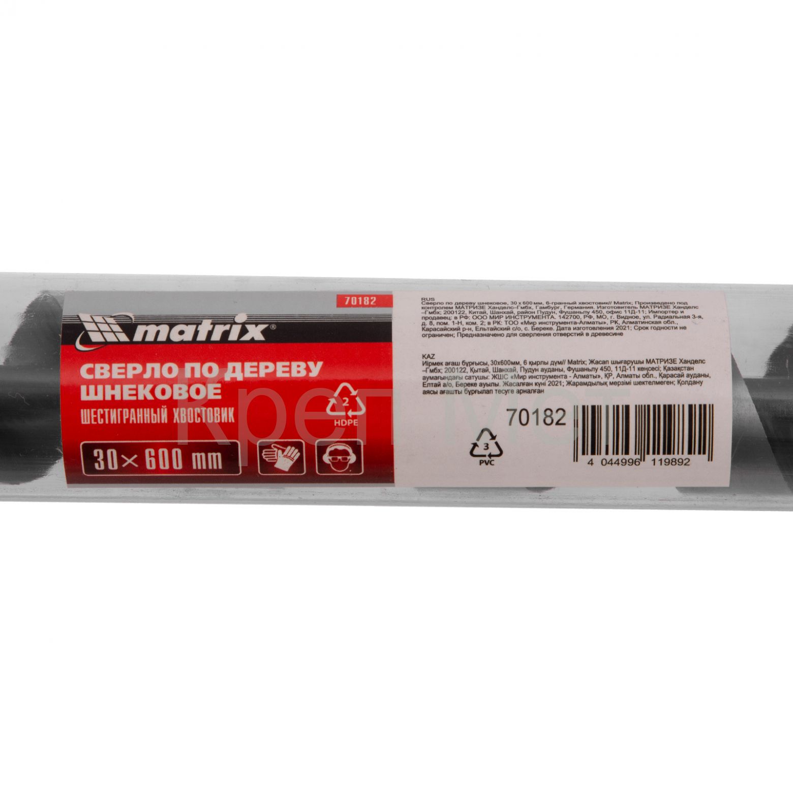 - Сверло по дереву шнековое, 30 х 600 мм, шестигранный хвостовик Matrix