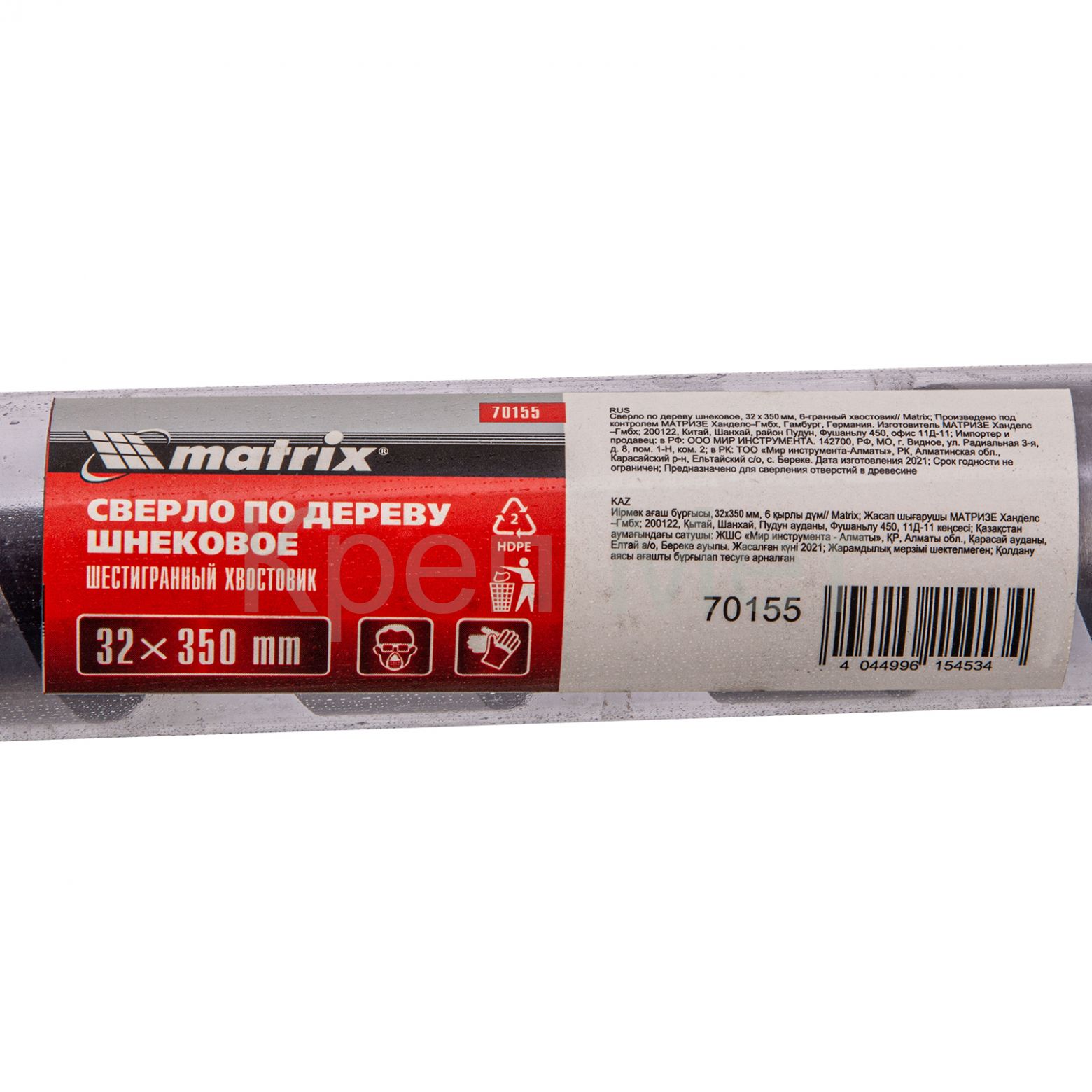 - Сверло по дереву шнековое, 32 х 350 мм, шестигранный хвостовик Matrix