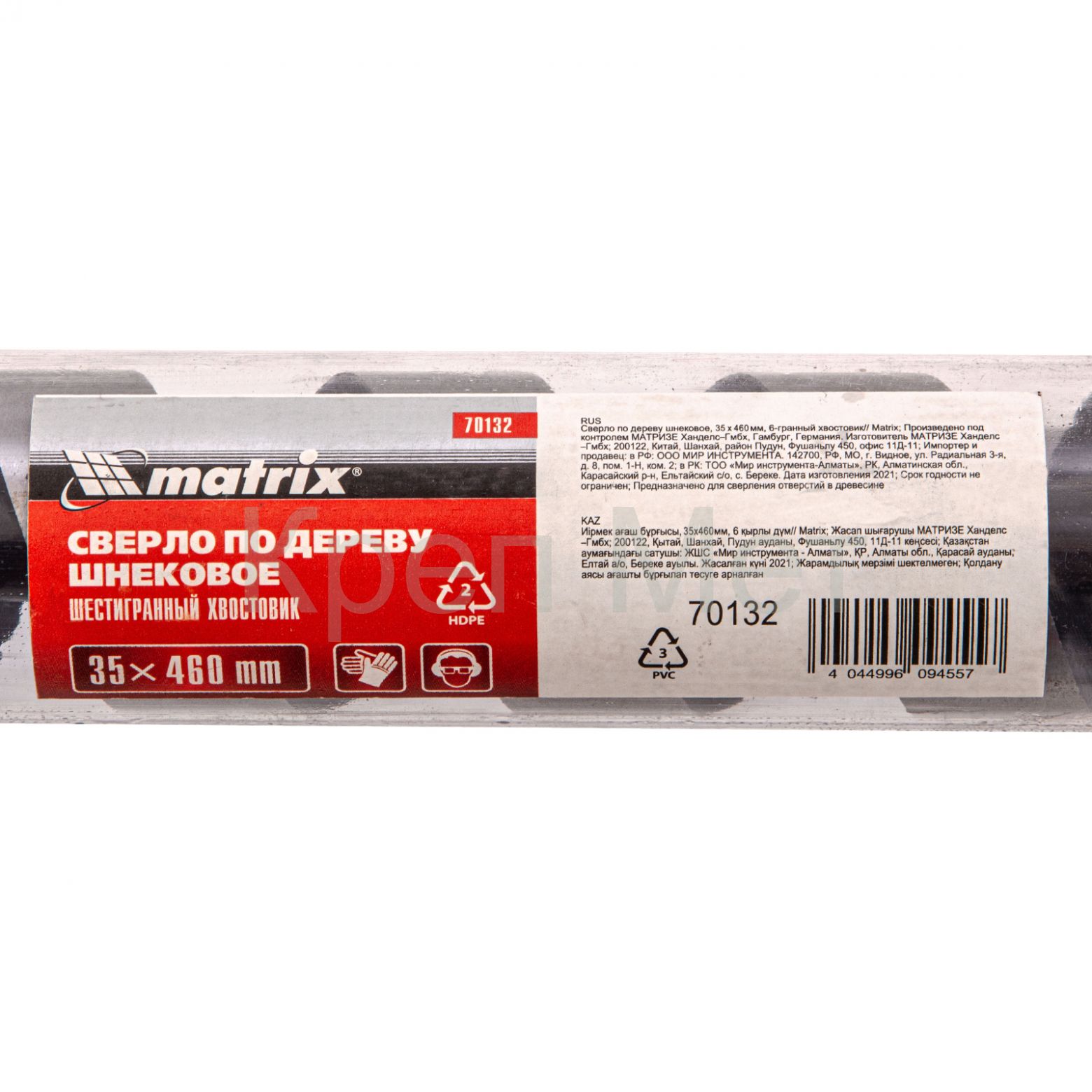 - Сверло по дереву шнековое, 35 х 460 мм, шестигранный хвостовик Matrix