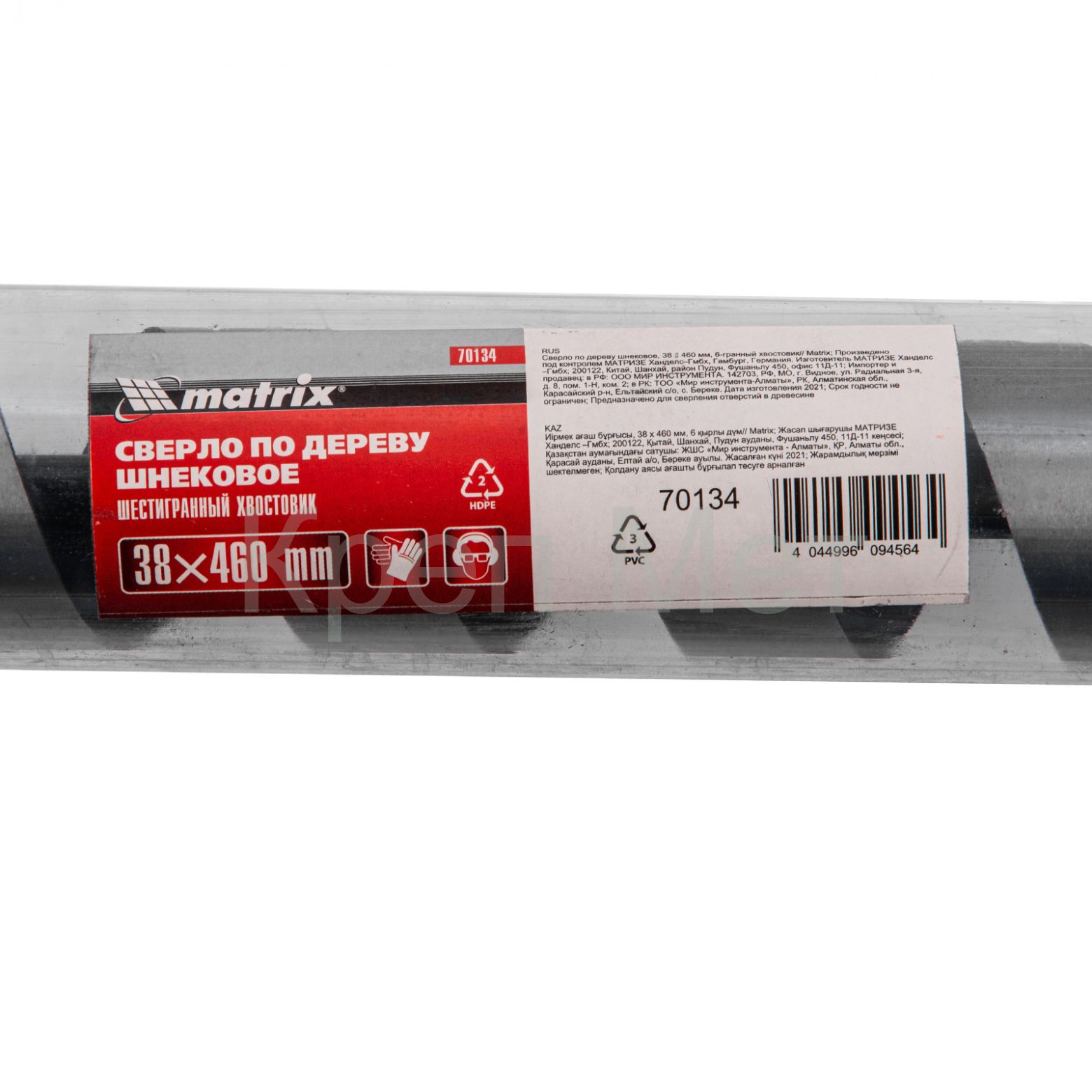 - Сверло по дереву шнековое, 38 х 460 мм, шестигранный хвостовик Matrix