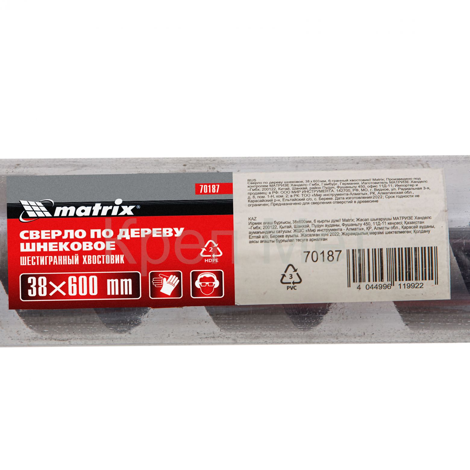 - Сверло по дереву шнековое, 38 х 600 мм, шестигранный хвостовик Matrix