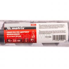 Сверло по дереву шнековое, 40 х 350 мм, шестигранный хвостовик Matrix