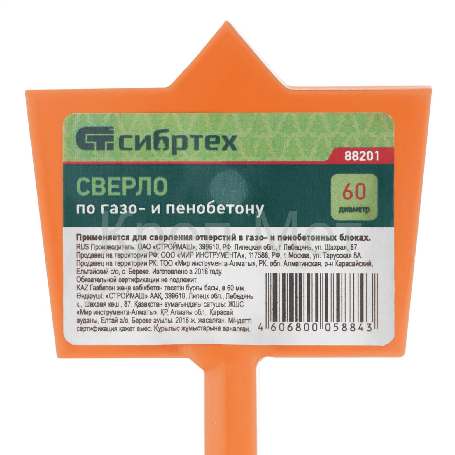 Сверло по газо и пенобетону, D 60 мм Сибртех