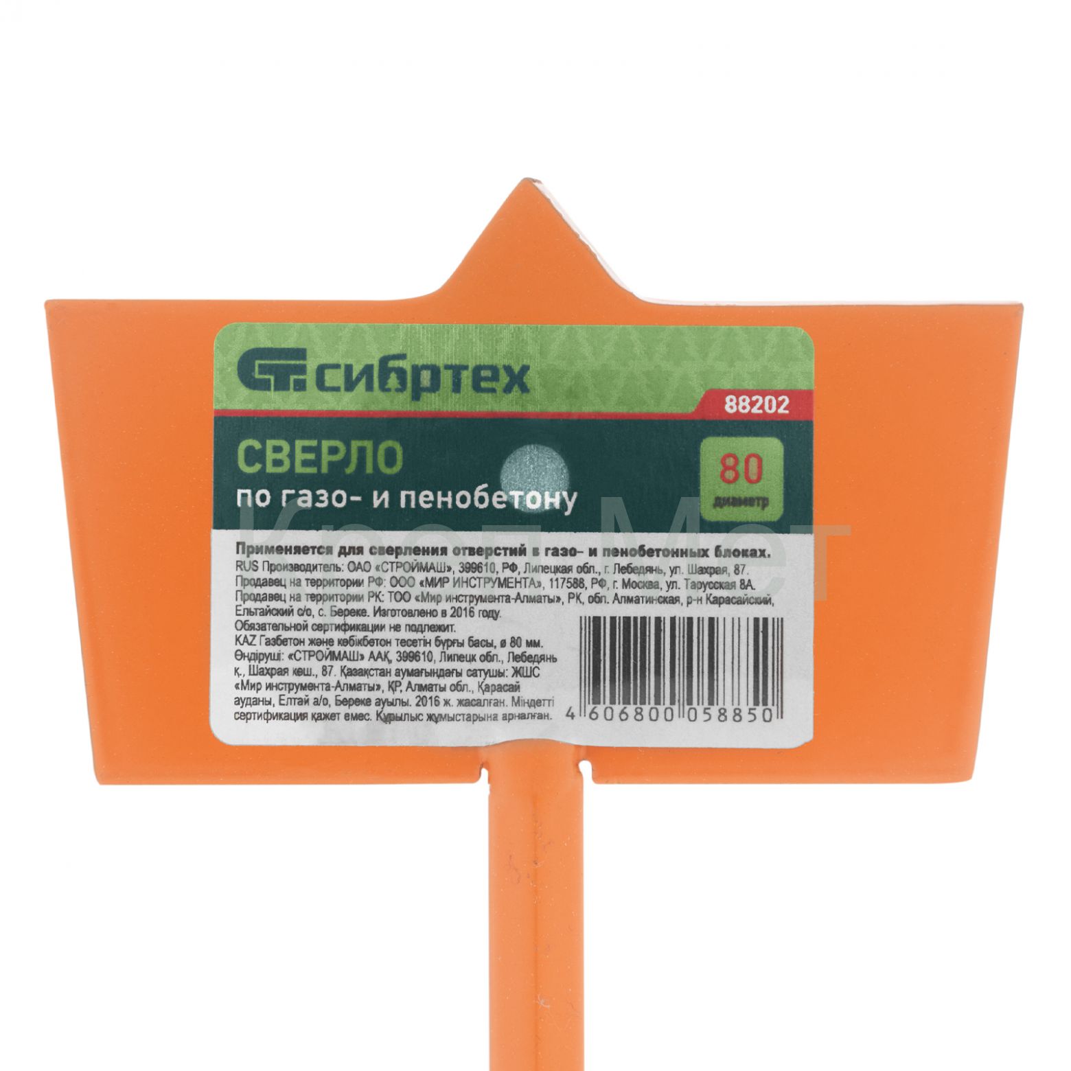 Сверло Сибртех 88202 диаметром 80 мм используется для получения отверстий в газо- и пенобетоне. Оснастка рассчитана на бытовое использование и подходит для выполнения небольшого объема работ.