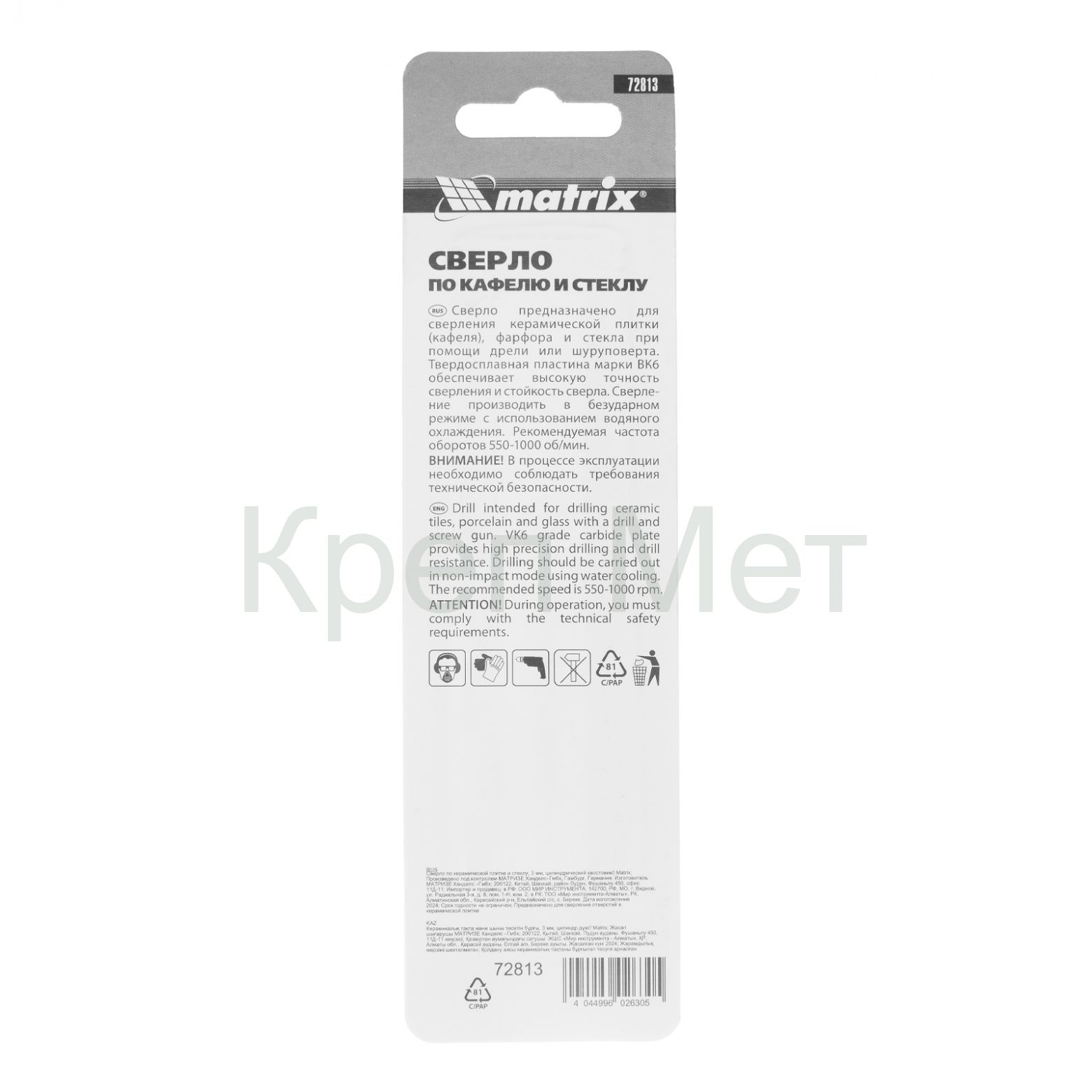 Сверло по керамической плитке, 3 мм, цилиндрический хвостовик Matrix