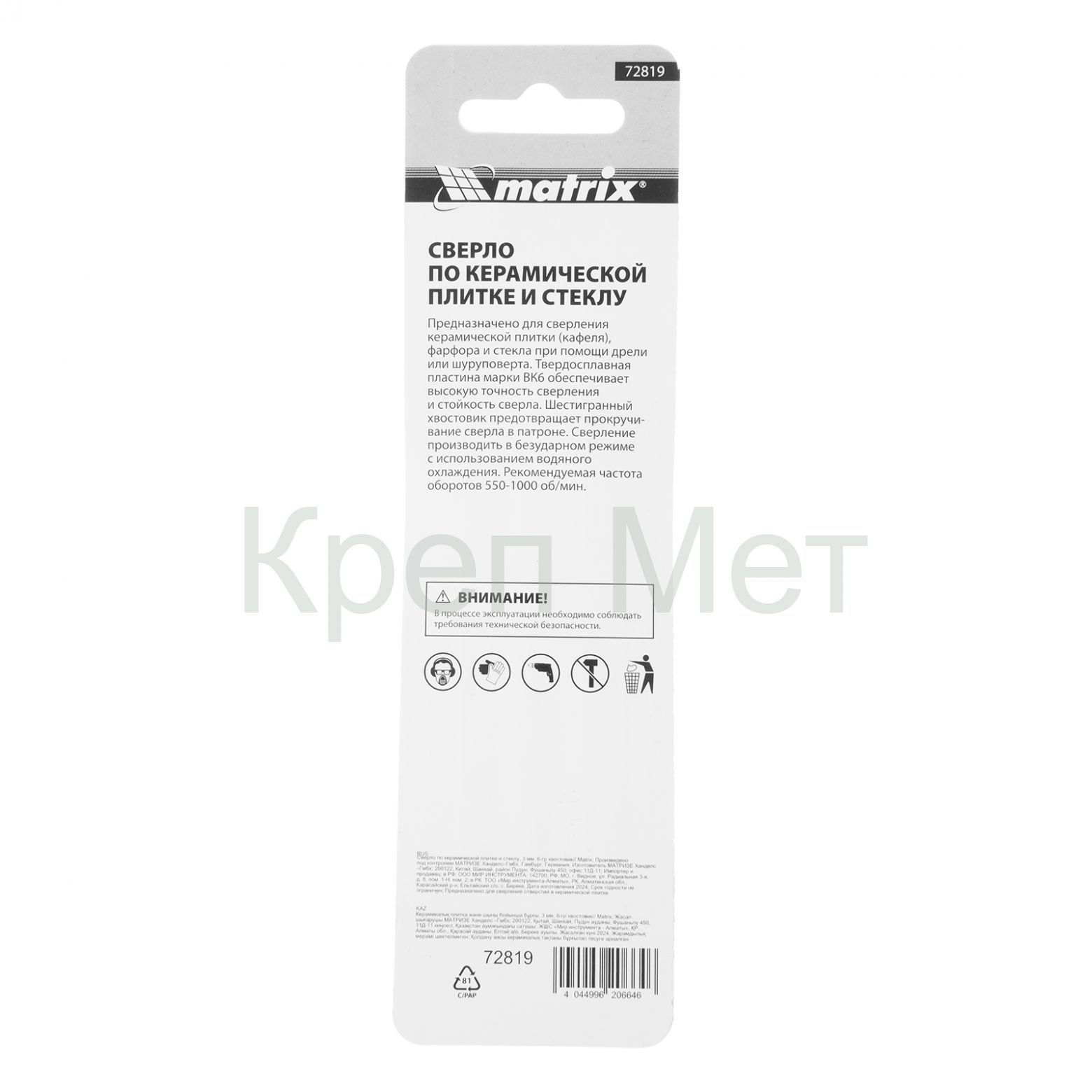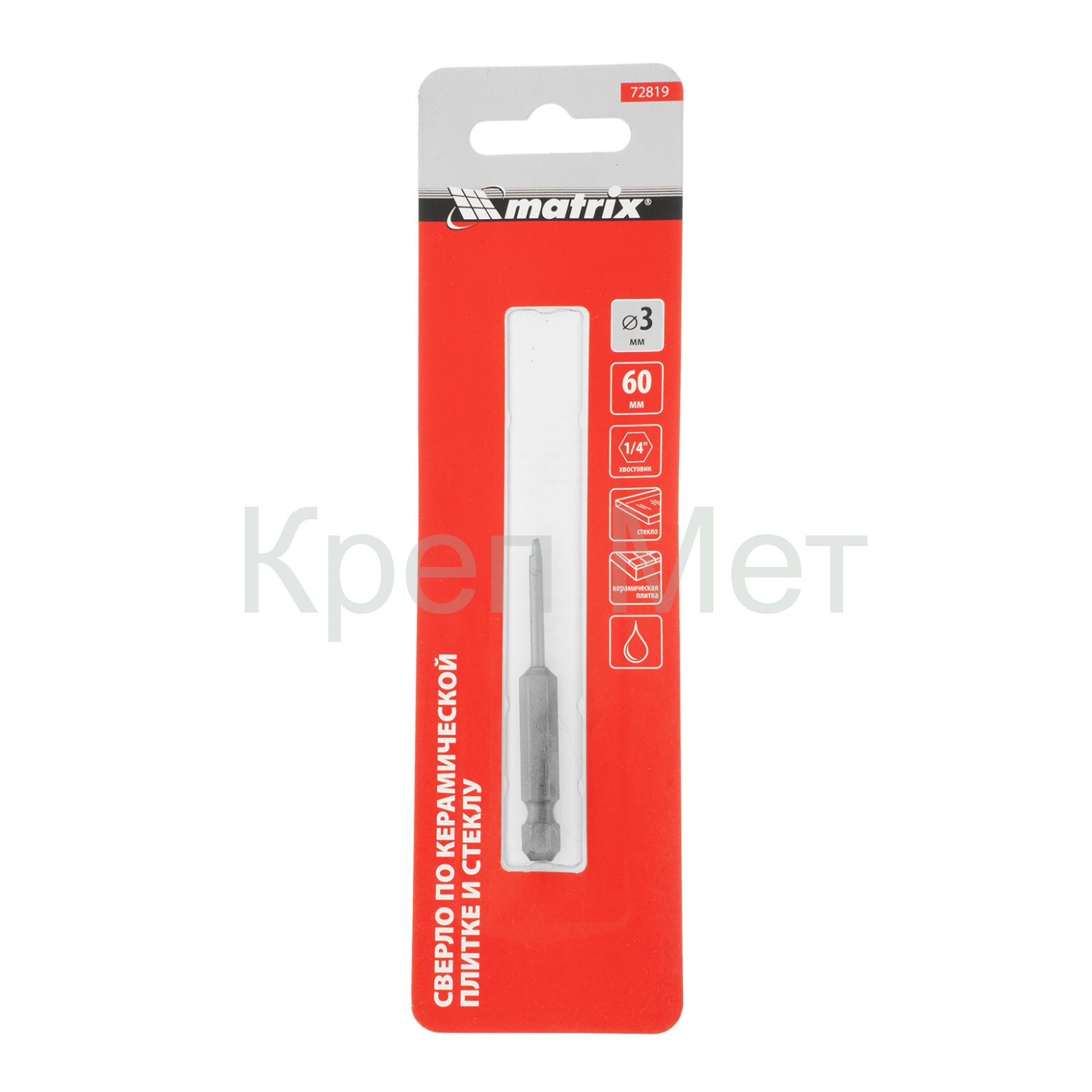 Сверло по керамической плитке и стеклу, 3 мм, шестигранный хвостовик Matrix