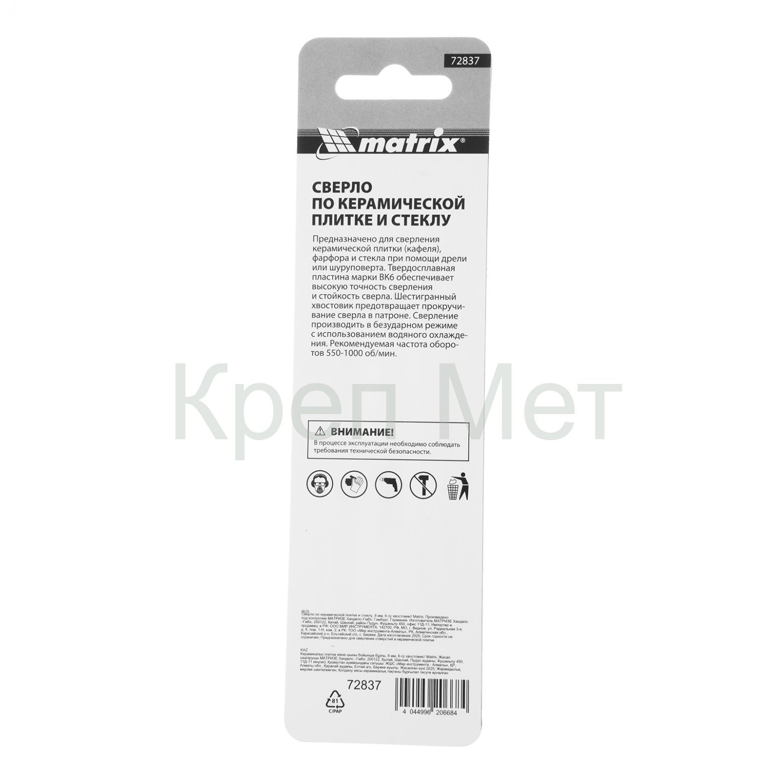 Сверло по керамической плитке и стеклу, 8 мм, шестигранный хвостовик Matrix