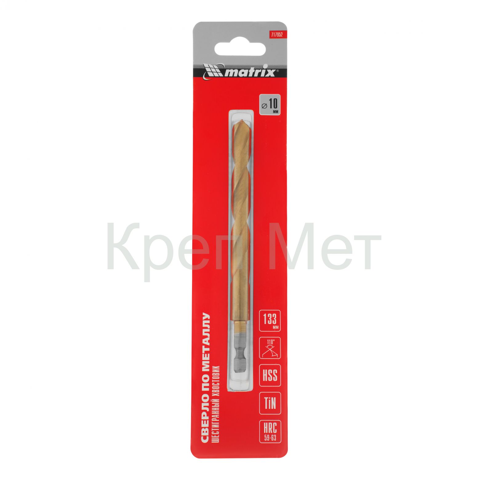 - Сверло по металлу, 10 мм, HSS, нитридтитановое покрытие, шестигранный хвостовик Matrix