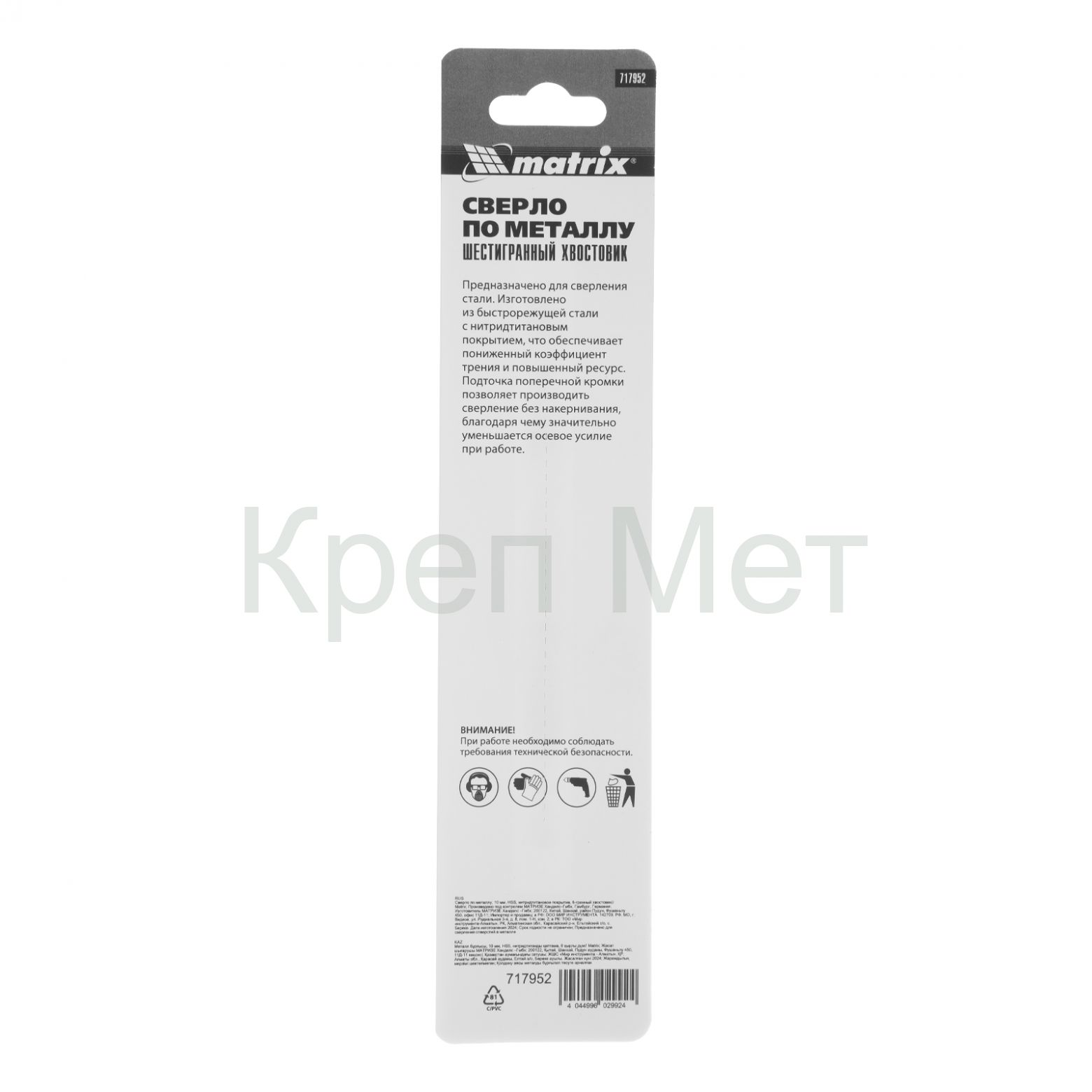 Сверло по металлу Matrix 717952 диаметром 10 мм, из стали HSS, с нитридтитановым покрытием и 6-гранным хвостовиком, предназначено для получения отверстий в черном металле, стали, чугуне и твердой бронзе. Устанавливается в патрон дрели.