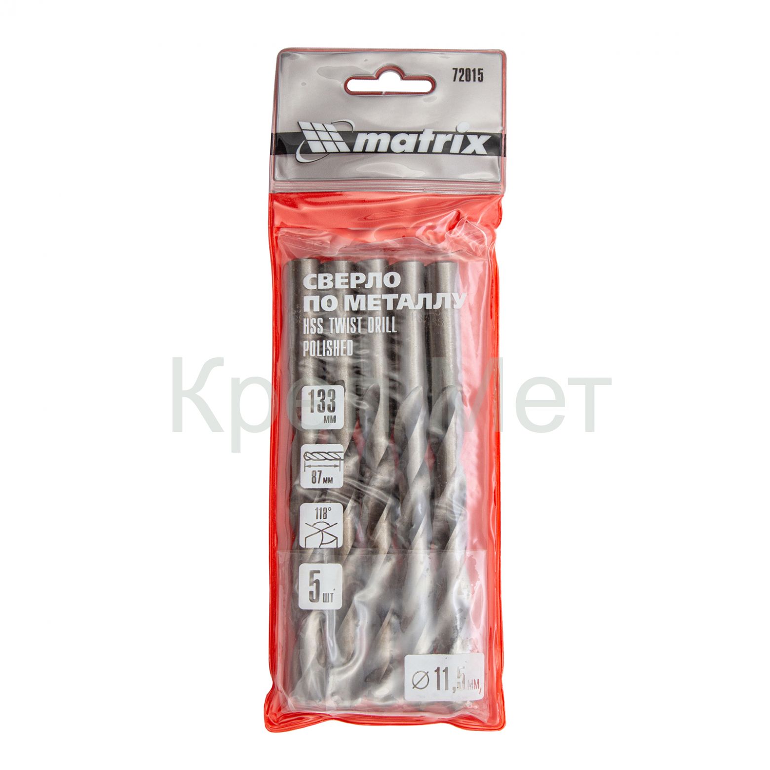 Сверло по металлу, 11.5 мм, полированное, HSS, 5 шт, цилиндрический хвостовик Matrix