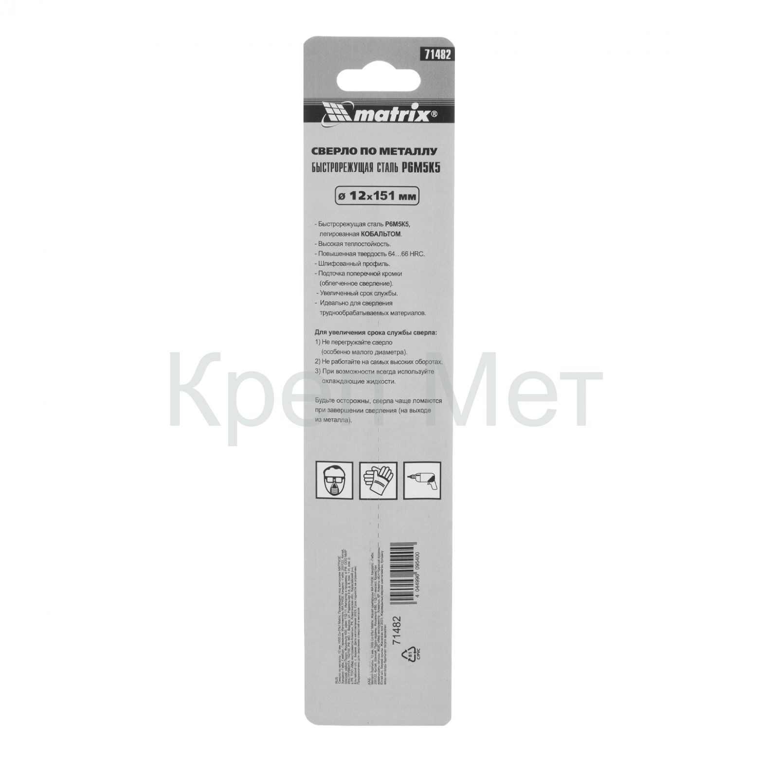 Сверло Matrix 71482 диаметром 12 мм, из стали HSS Co-5%, имеет угол заточки 135°, оптимальный для сверления легированных и цветных металлов. Подходит для профессионального использования на строительной площадке.