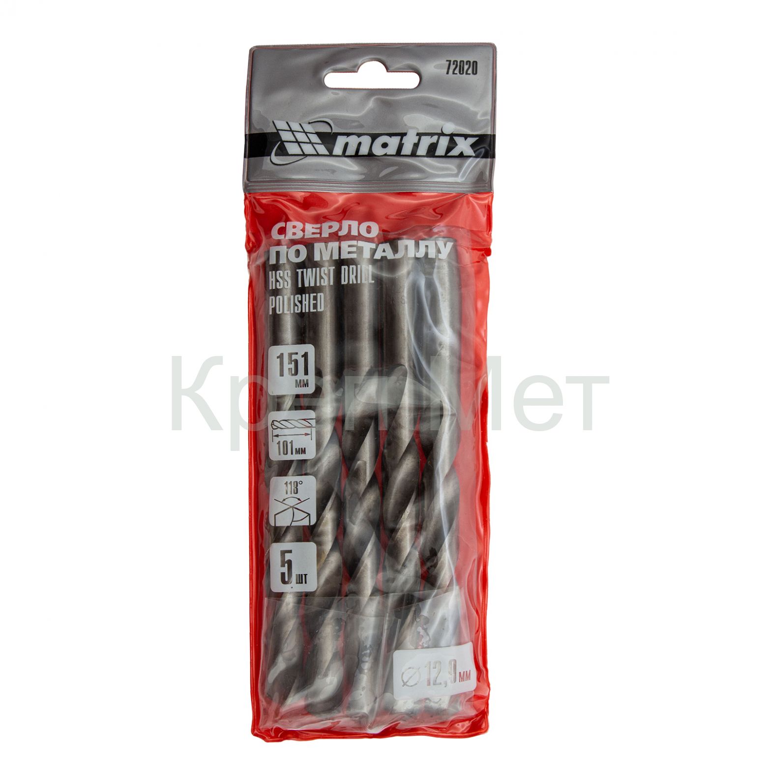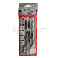 - Сверло по металлу, 12 мм, полированное, HSS, 5 шт, цилиндрический хвостовик Matrix