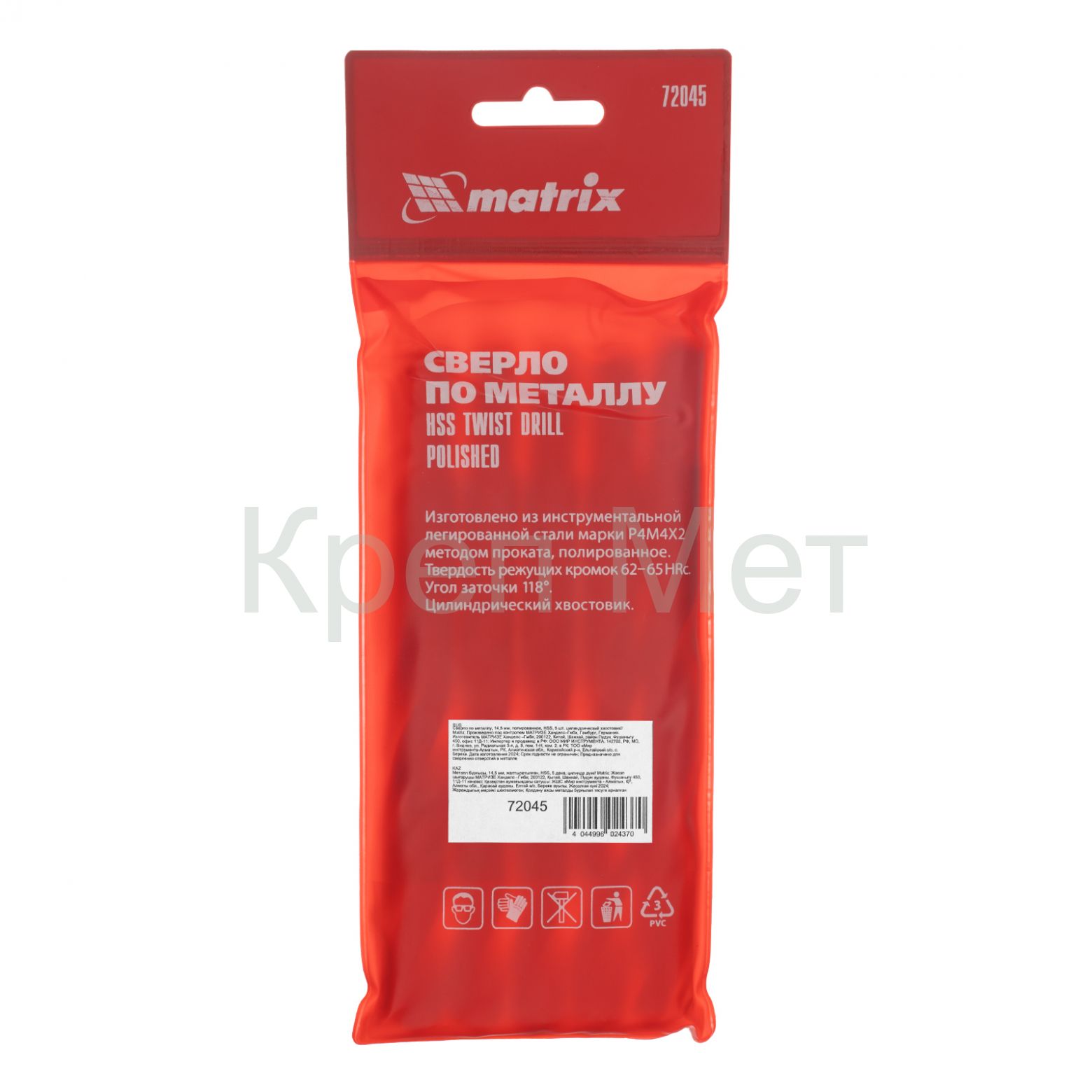 Сверло по металлу, 14.5 мм, полированное, HSS, 5 шт, цилиндрический хвостовик Matrix