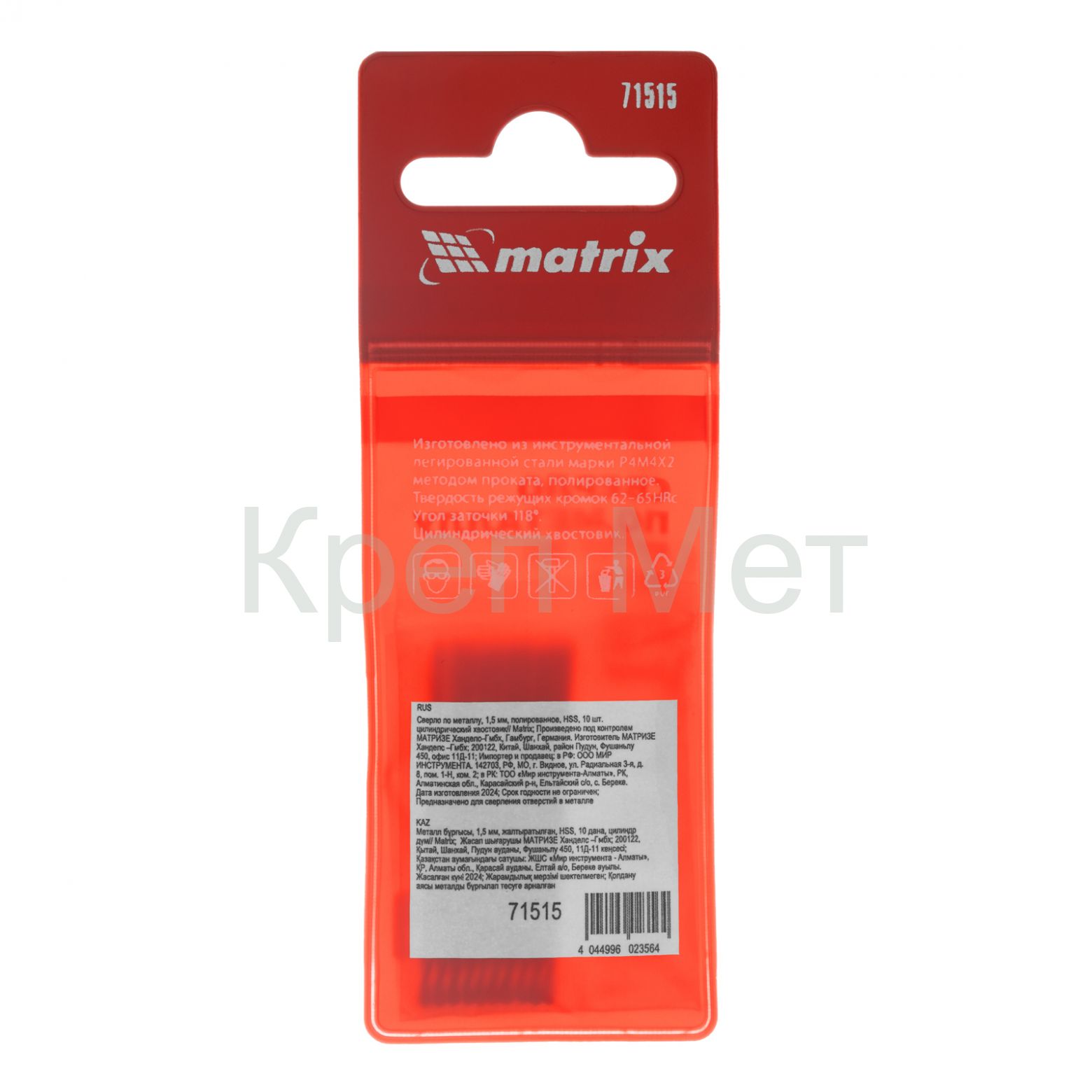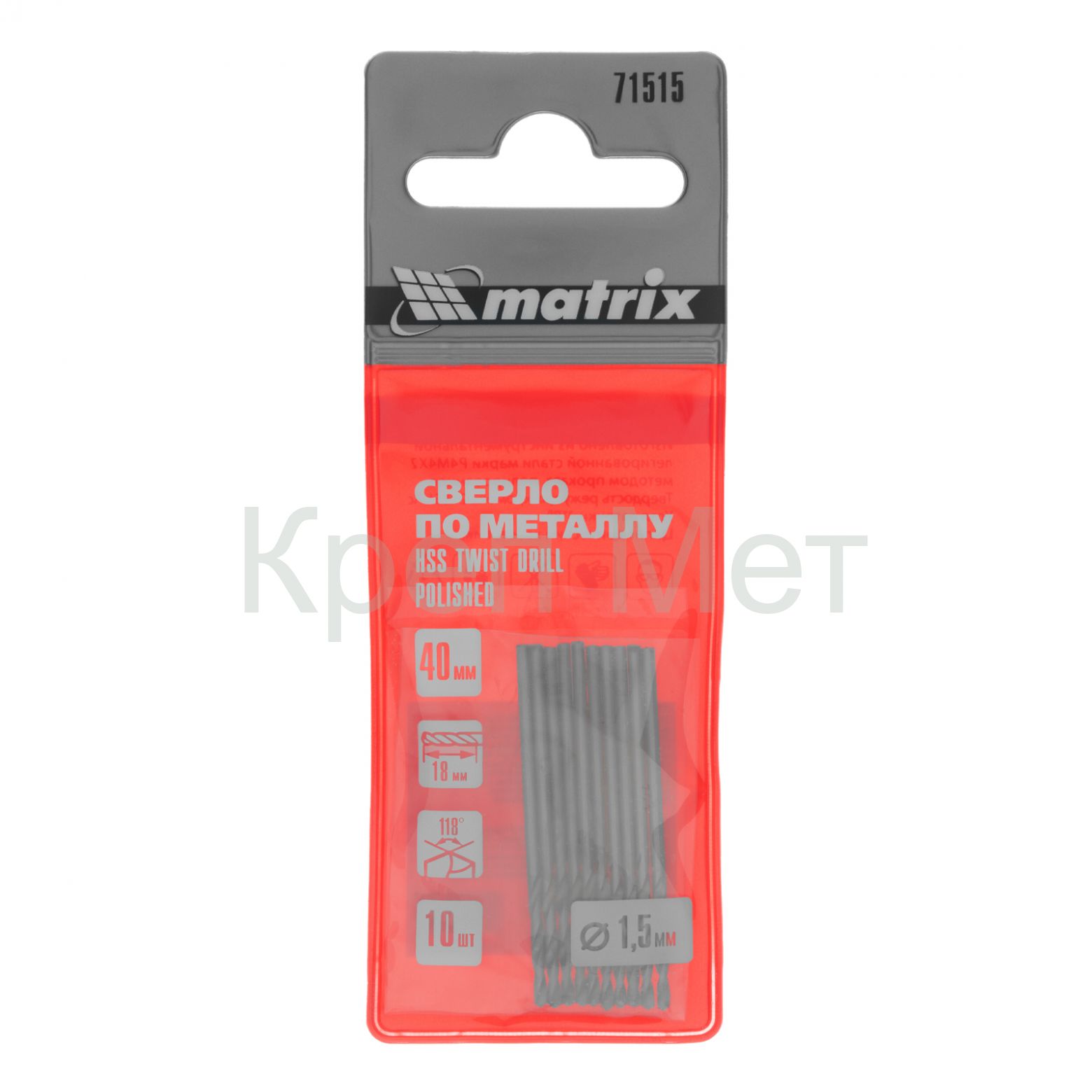 - Сверло по металлу, 1.5 мм, полированное, HSS, 10 шт, цилиндрический хвостовик Matrix