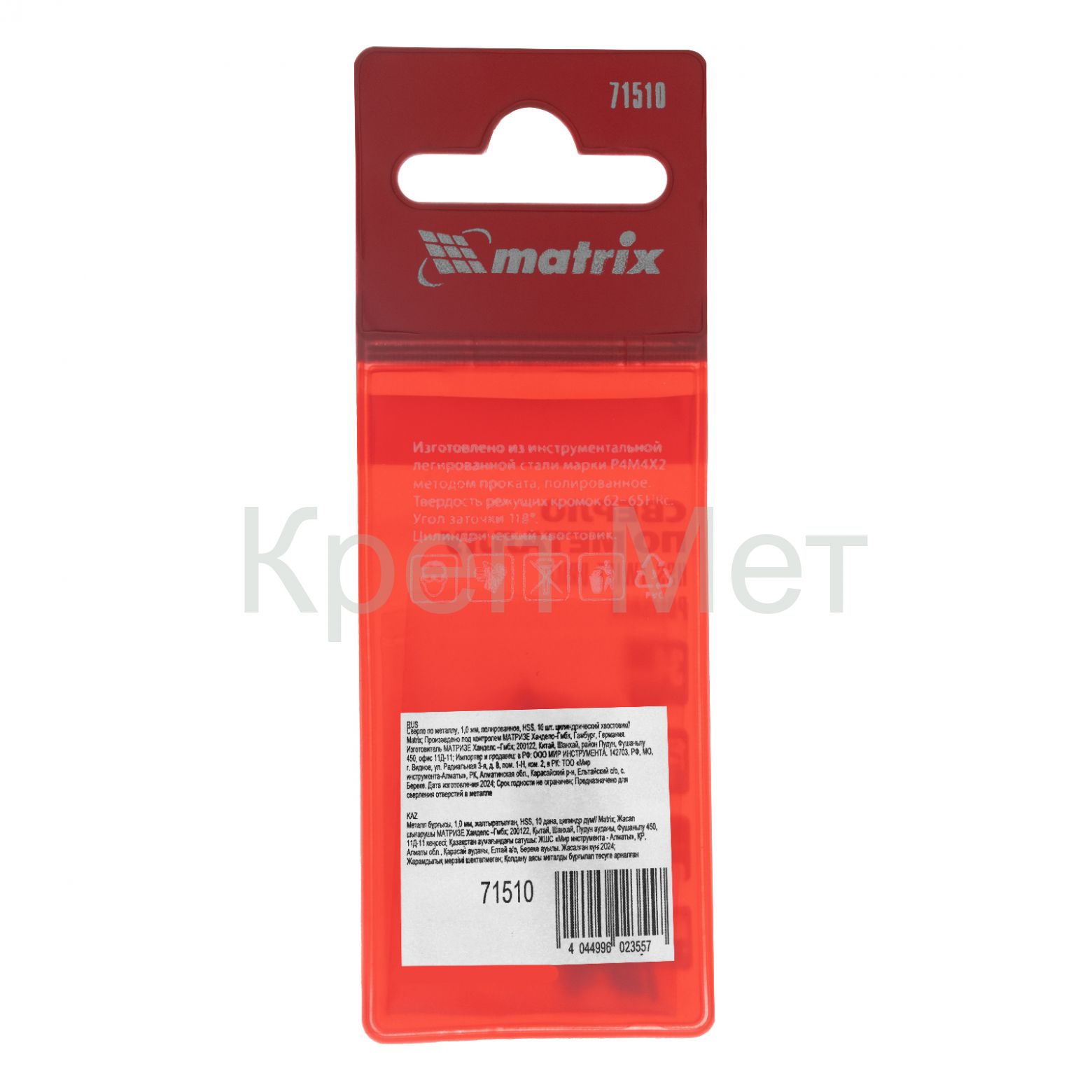 - Сверло по металлу, 1 мм, полированное, HSS, 10 шт цилиндрический хвостовик Matrix